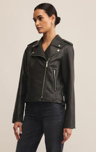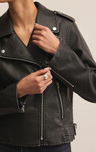 Soft, supple faux leather gives this moto jacket a clean, modern feel, with a zip front and functional zipper pockets. It’s a statement layer you’ll throw on over everything, from floaty dresses to your favorite denim.