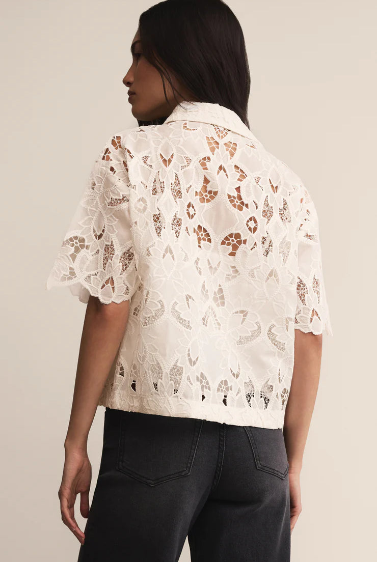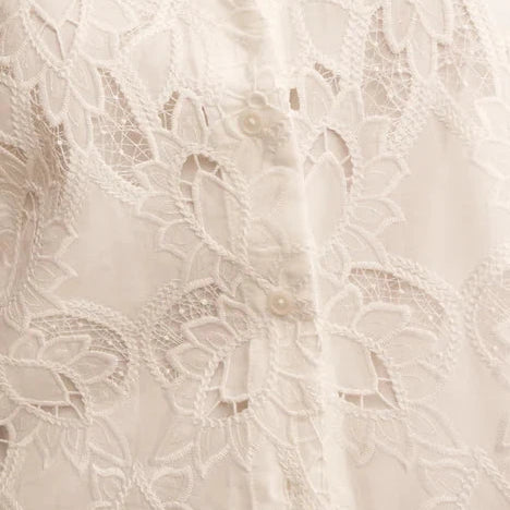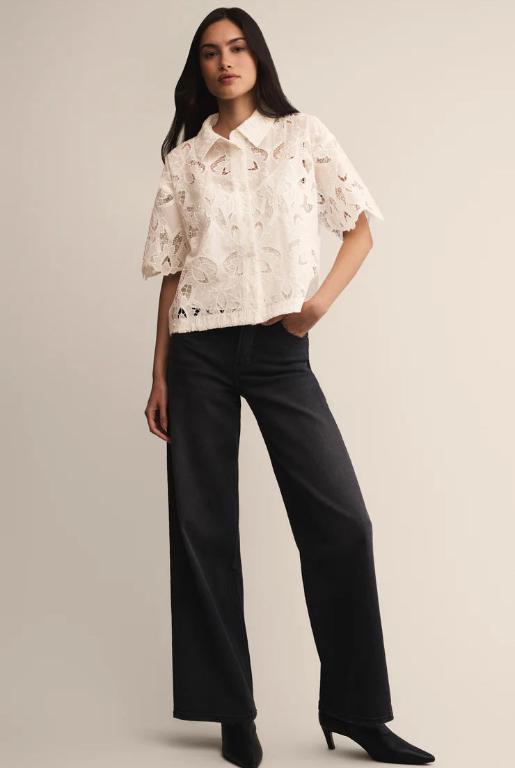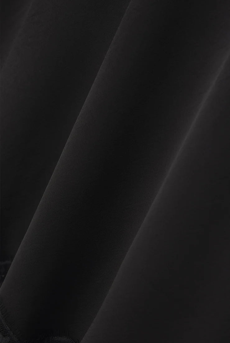 - Relaxed, oversized silhouette with raw hem details and ladder stitching