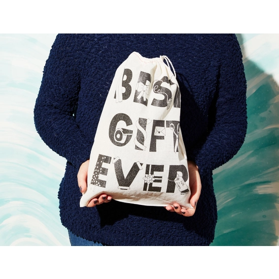 This drawstring bag makes the perfect (and easy!) gift wrap for any Maptote product. Printed with shimmer black ink for a festive holiday touch!
