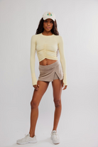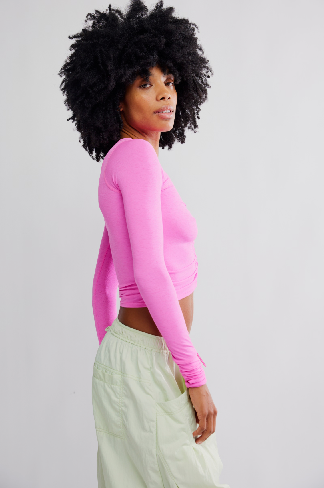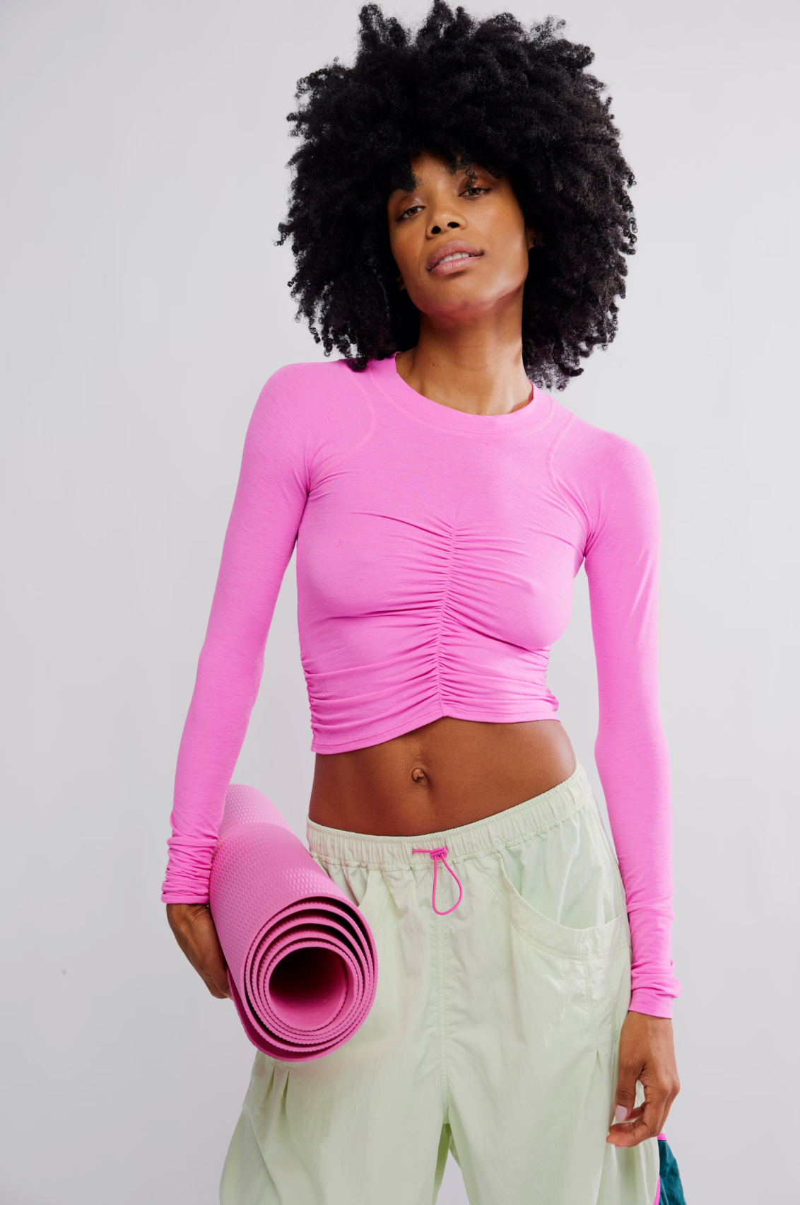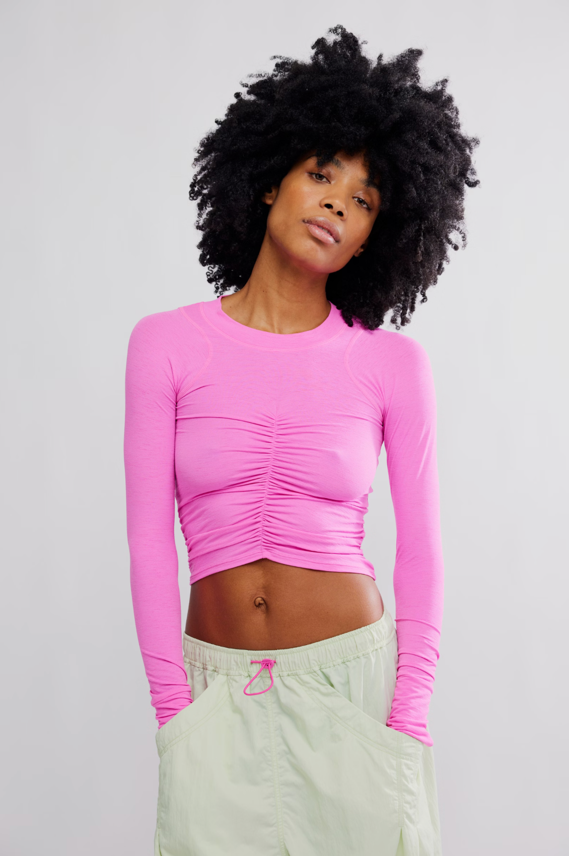 The perfect layer for every activity featured in a moves-with-you silhouette and long sleeve design with ruched bust detail for a forever flattering essential.