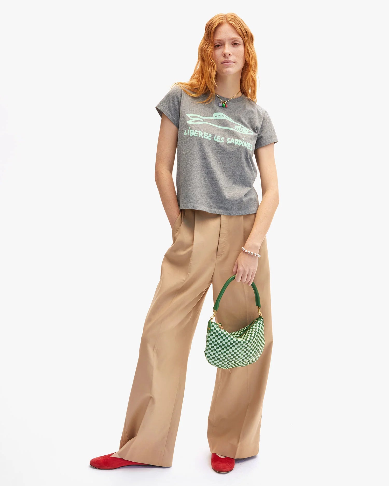 Danica is 5 feet and 8 inches tall, size 2, wearing a S