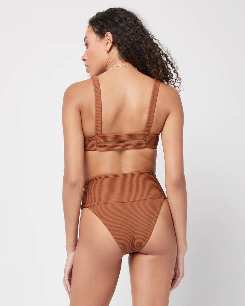 We raised the bar on our best selling high waist bikini bottoms. Part of our "Eco Chic Off the Grid" collection, the fiber in the Desi Bikini Bottom is made from 100% recycled materials. Using REPREVE® - A high quality performance fiber. Featuring an ultra-flattering banded waist and classic coverage.