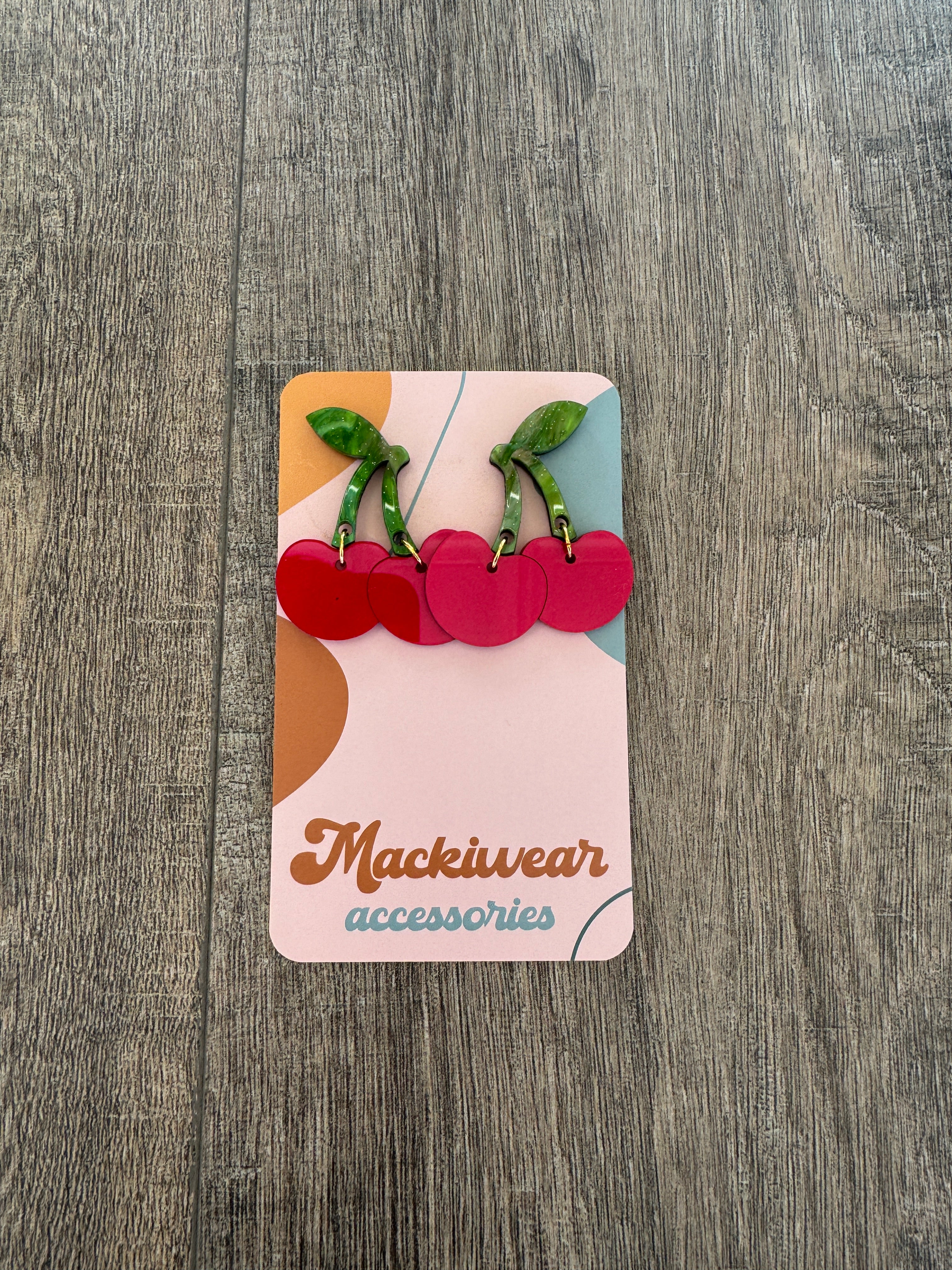 Hand picked, locally made Cherry Earrings add a sweet touch to any outfit! These hand crafted earrings are a unique and fun addition to your jewelry collection. Perfect for any cherry lover or someone looking for a pop of color.