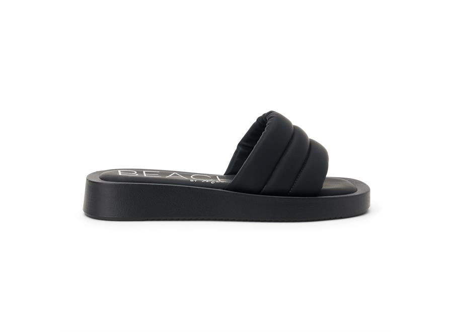 The Pax is the perfect summer slip on for the beach, lunch, or seeing friends. Features a super soft padded footbed and puffy faux leather upper. 1 inch platform and slight square toe.