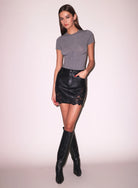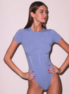 Our Organic Cotton T-Shirt Bodysuit, cut from super-soft & lightweight certified organic cotton. Features short sleeves and lingerie-inspired, corset effect princess seams to give shape and flatter your figure while being comfortable enough to wear all day. Bottom snap closure. Layer over a Mini Skirt.