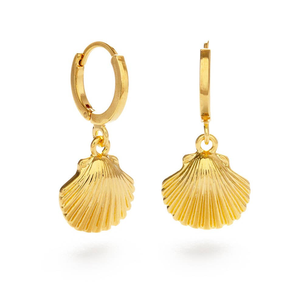 14mm hoop and shell charm are made of 14k gold plated brass, lead and nickel free.