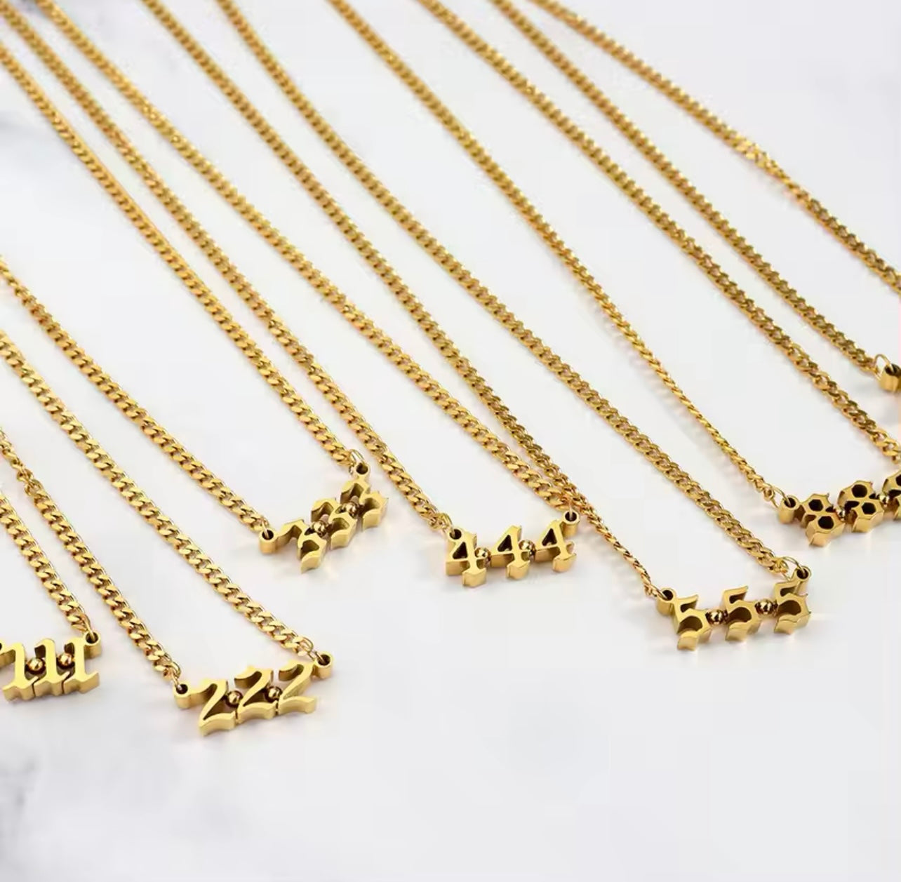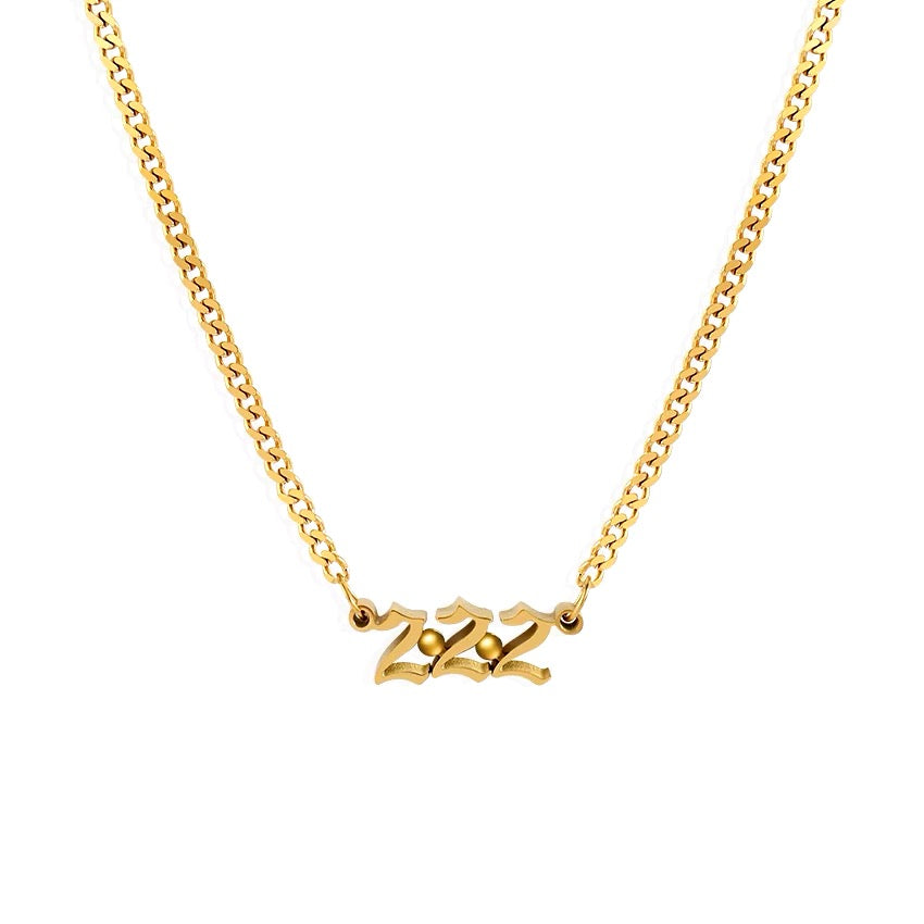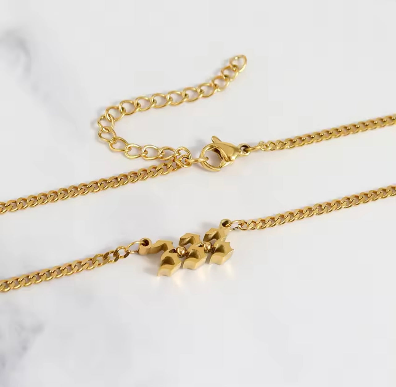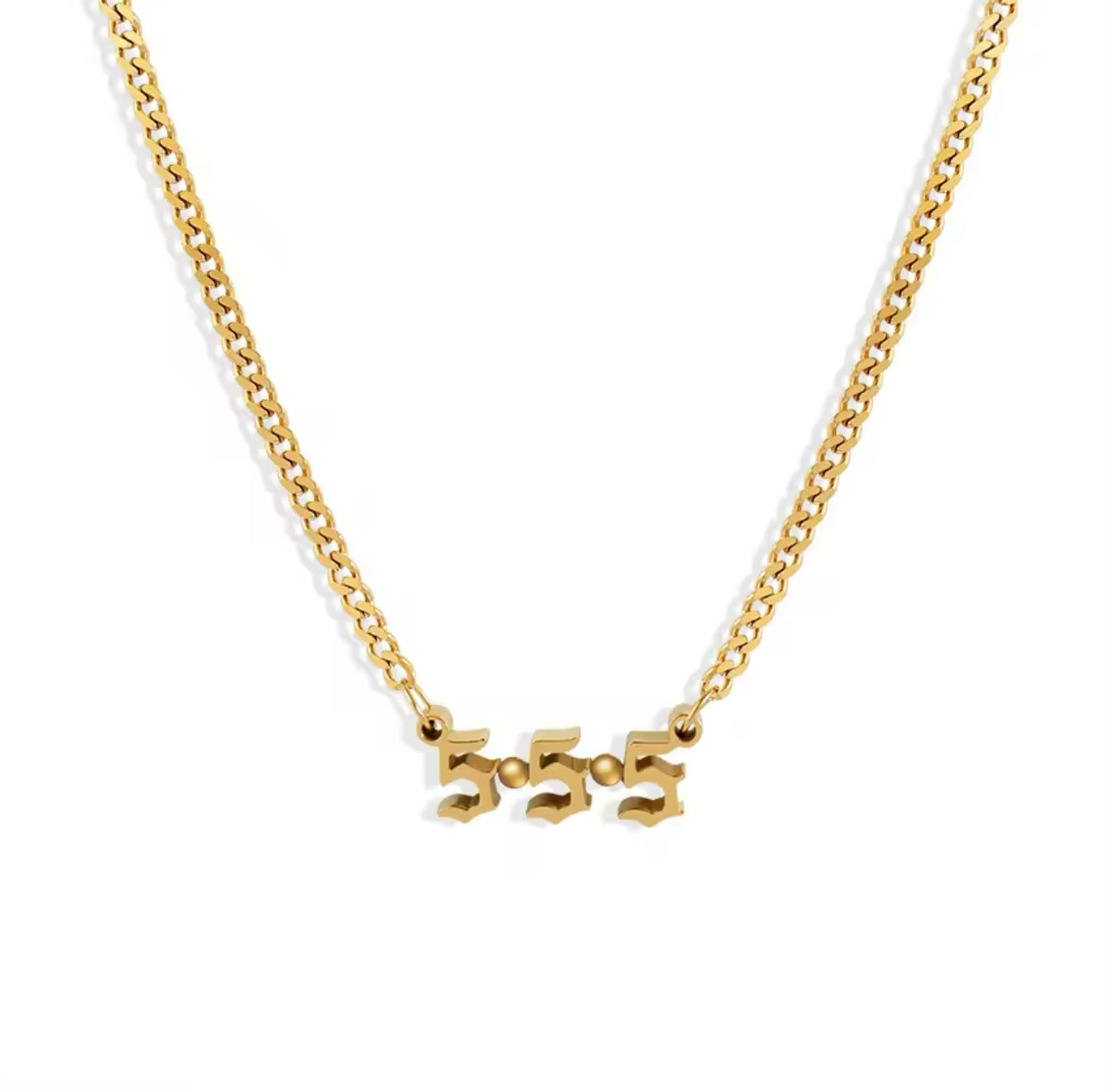 Unleash your inner divine with our Angel Number Necklace. Crafted with elegant old English font, this necklace features your chosen angel number, bringing you peace and guidance. Elevate your jewelry collection and channel your spiritual energy with this exclusive piece.