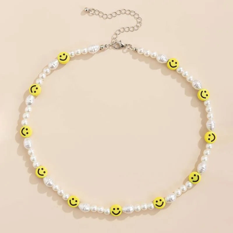 Add some cheer to your wardrobe with our Happy Pearl Choker! This adjustable choker features a smiling face charm, bringing a playful touch to any outfit. Spread happiness wherever you go with this quirky and fun accessory.