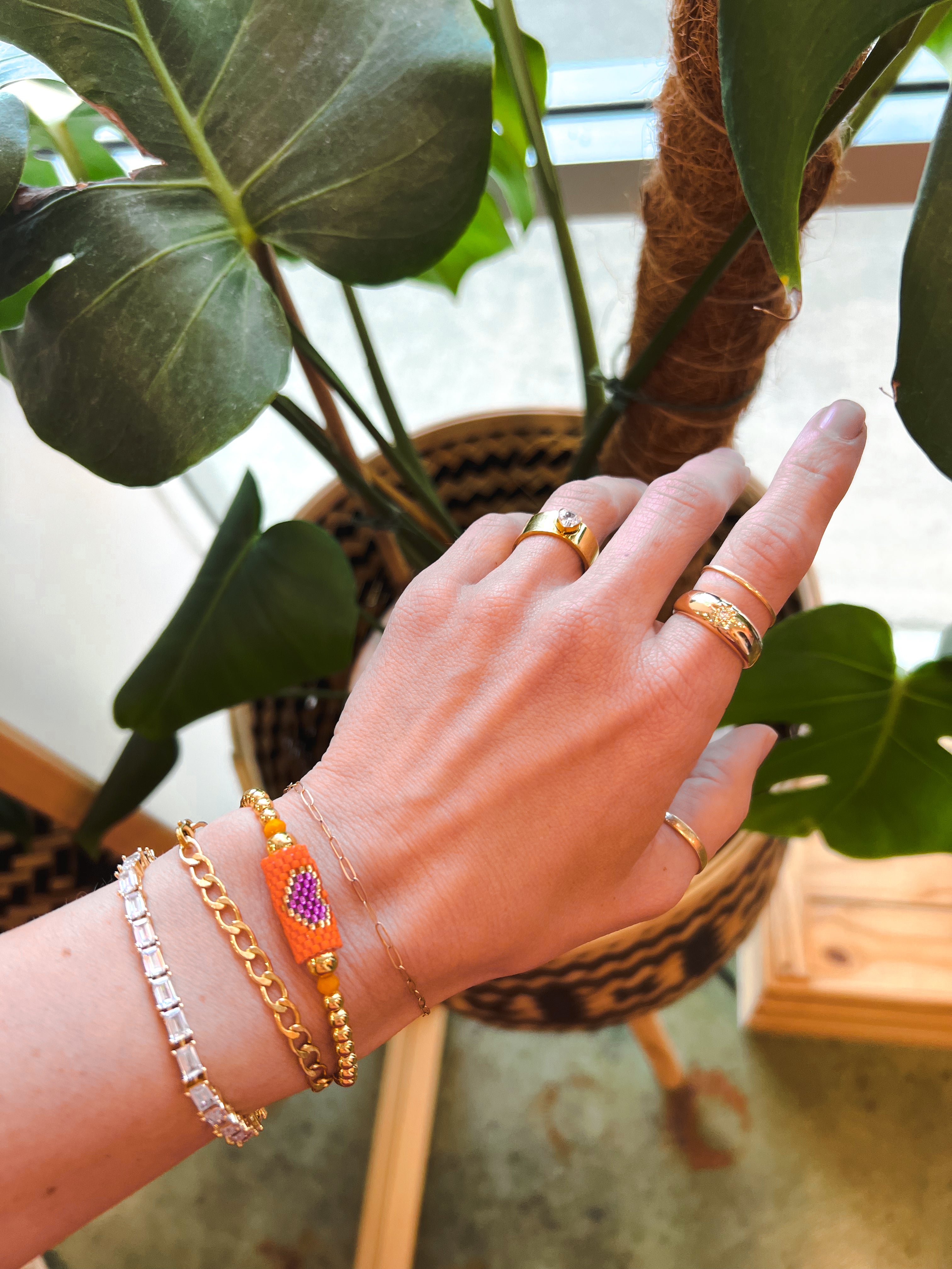 Make a statement with this one-of-a-kind Heart Beaded Gold Bracelet! This beady-good bracelet is sure to get pulses racing, with its alluring gold beads and heart-shaped charm. Be bold and rock the look today! 🤩