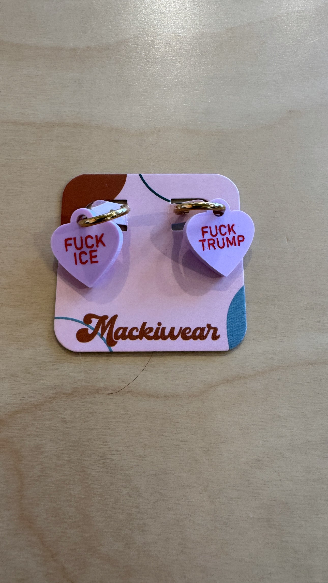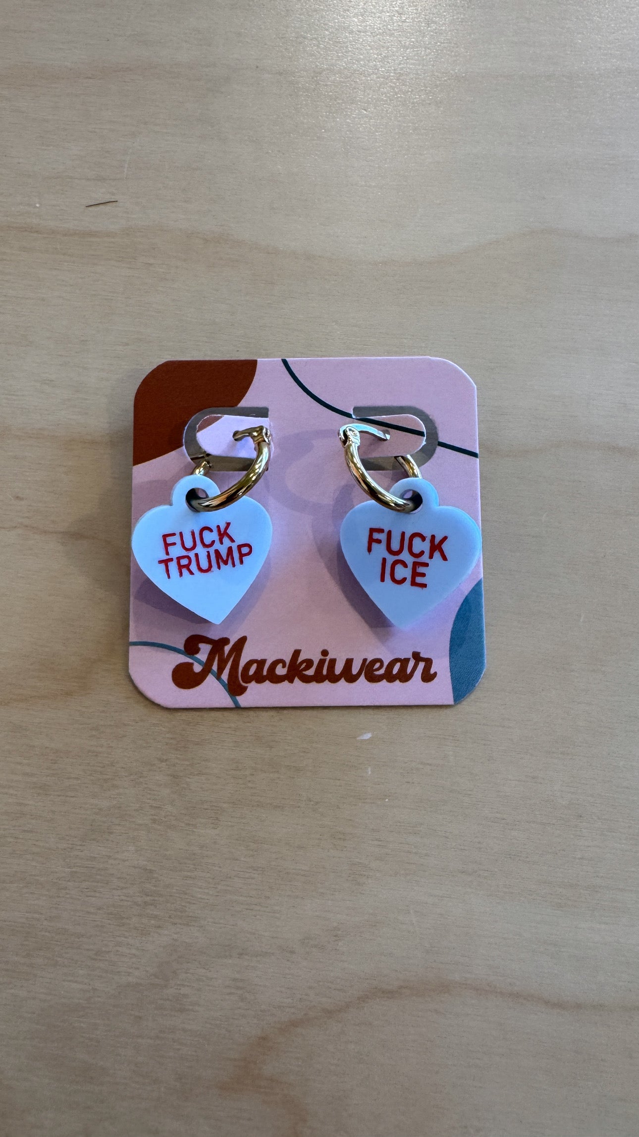 Soft color meets unapologetic message. The Sweet Rebellion Hoops pair pastel heart charms with bold lettering for a striking contrast that feels playful, defiant, and intentionally styled. Finished on sleek gold hoops, these earrings make a statement without sacrificing wearability.
