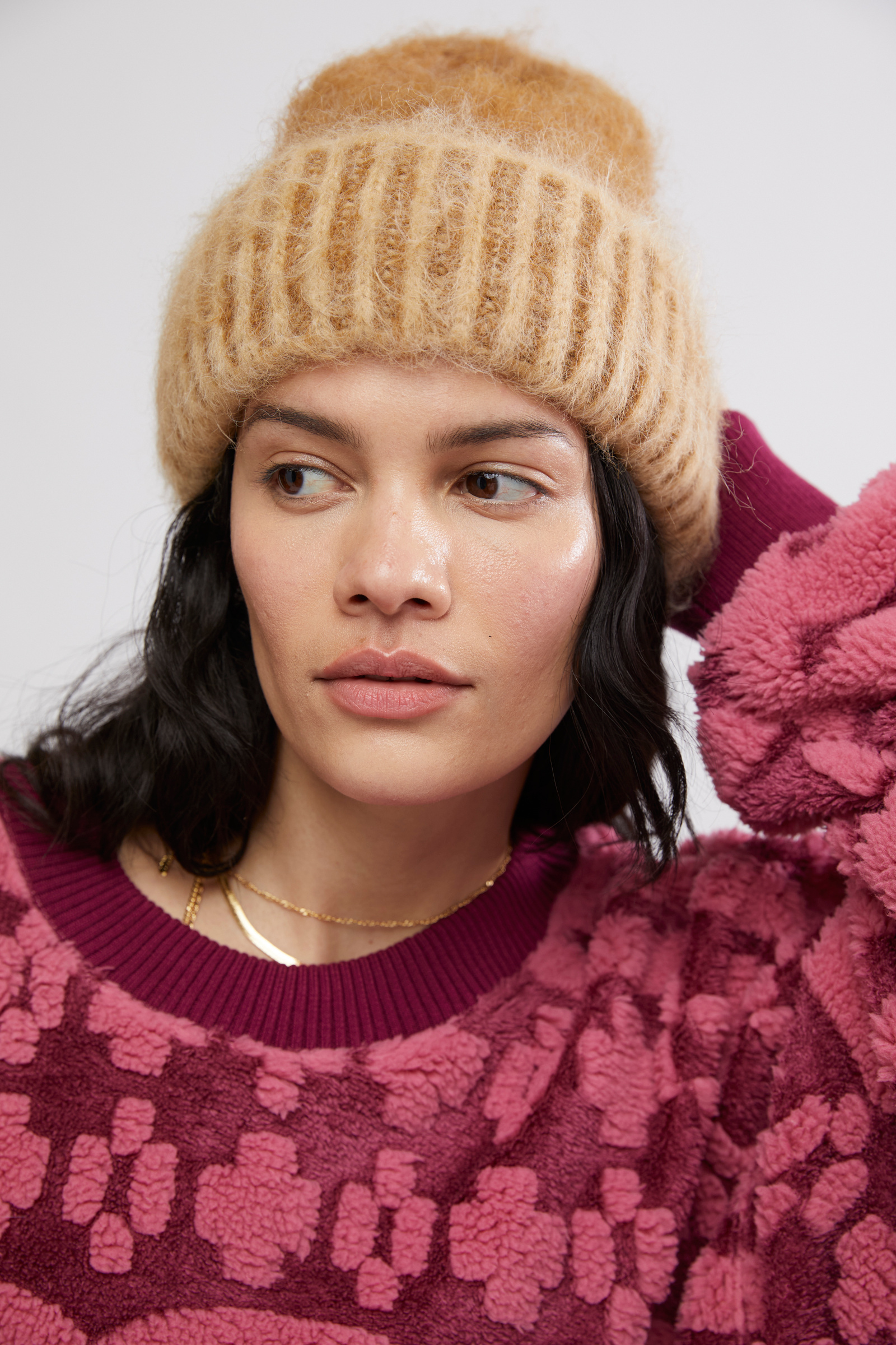 Add the perfect finishing touch to any ‘fit with this goes-with-anything beanie featured in a staple silhouette and super fuzzy fabrication for texture and dimension.