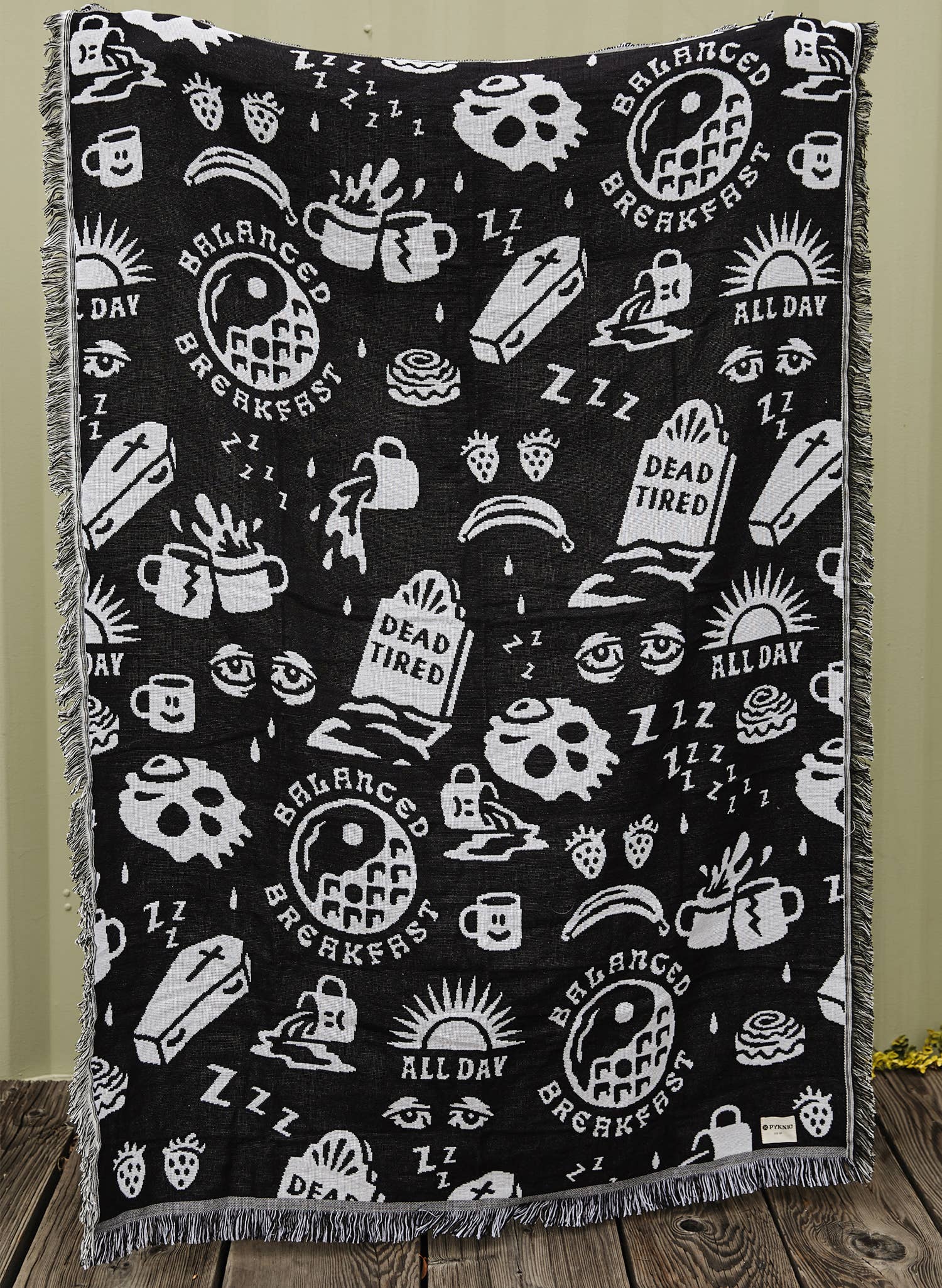 Dead Tired Cotton Blanket with Coffee Graphic Pattern