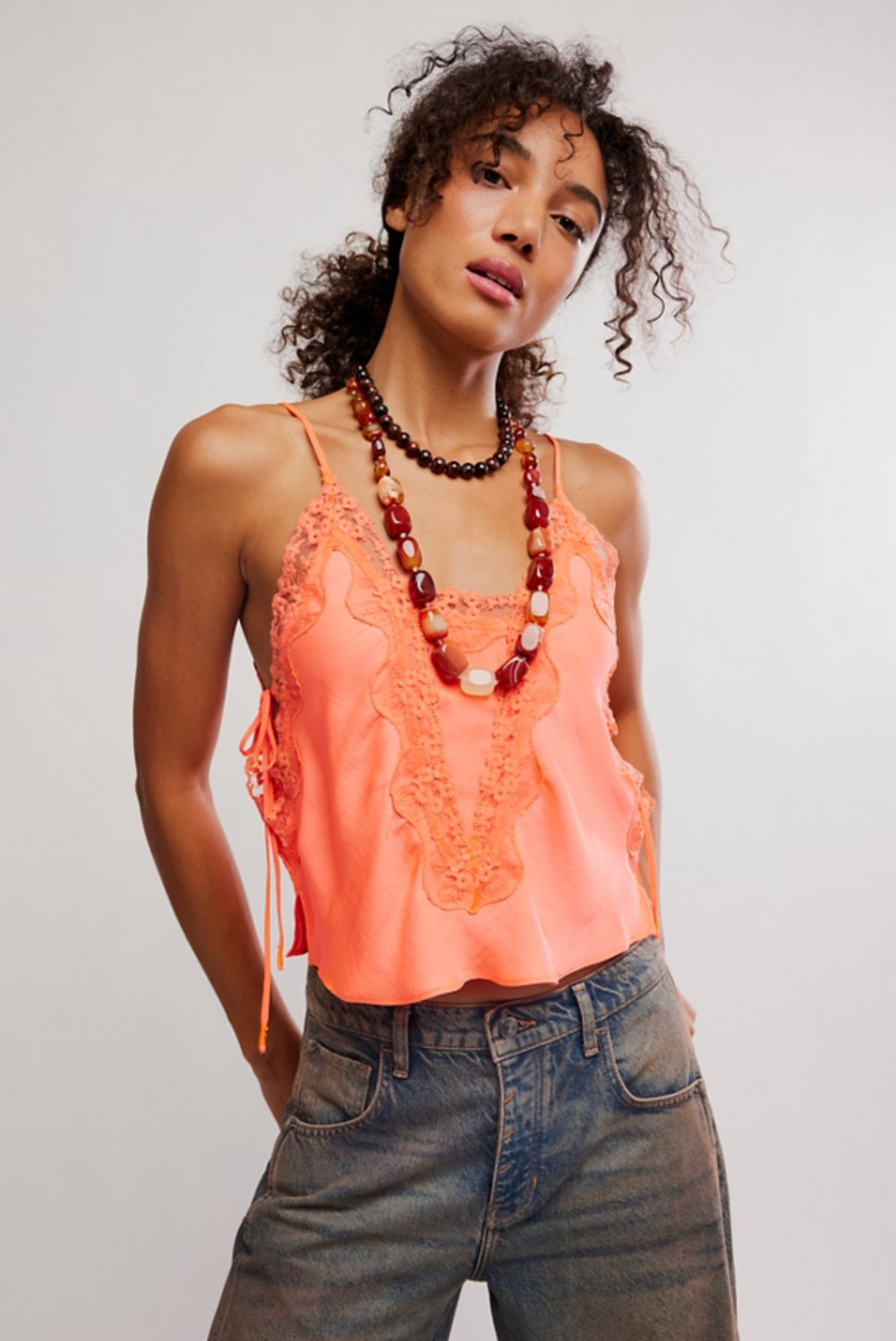 Add a lovely layer to your look with this so sweet cami, adorned with sheer lace trim throughout.
