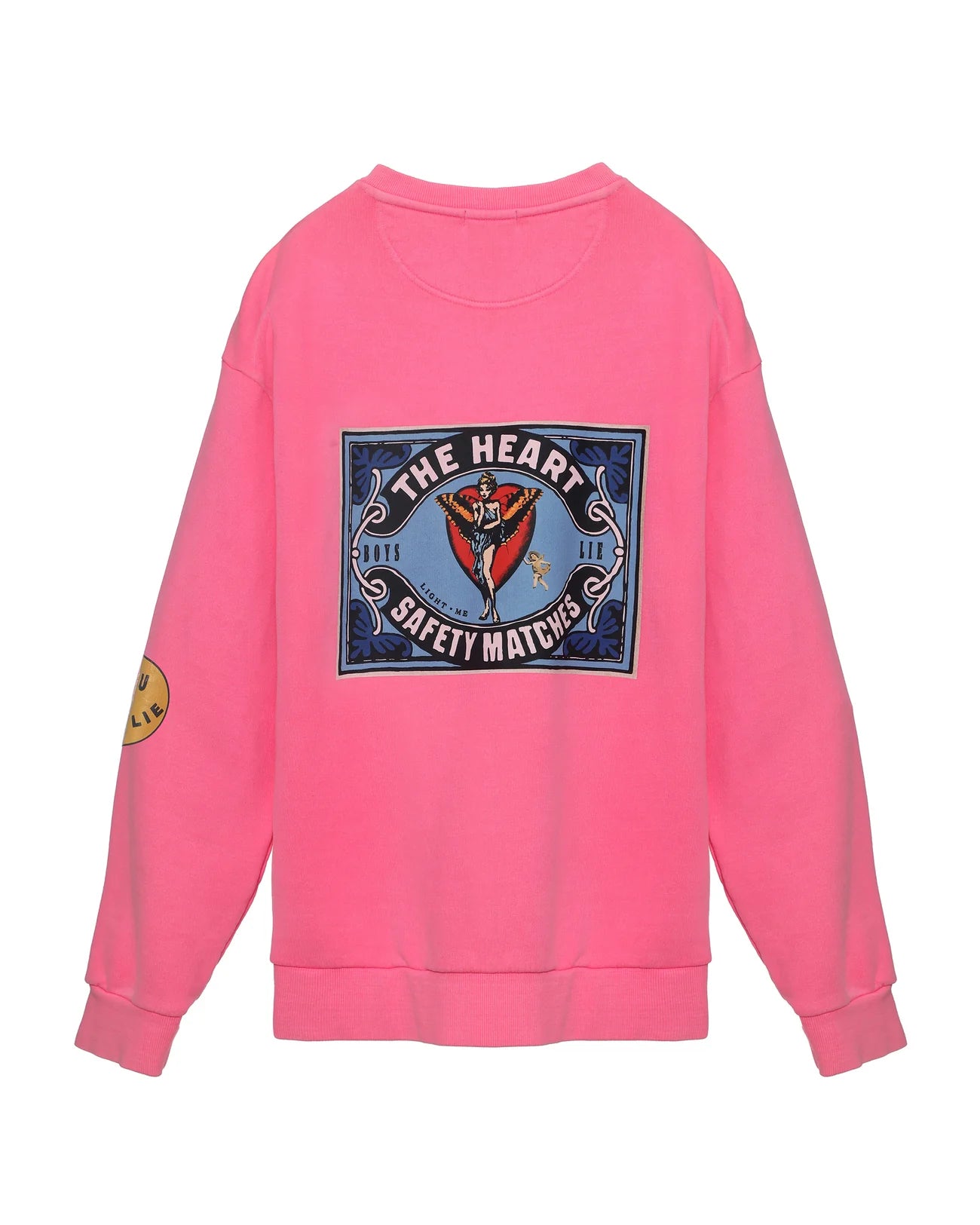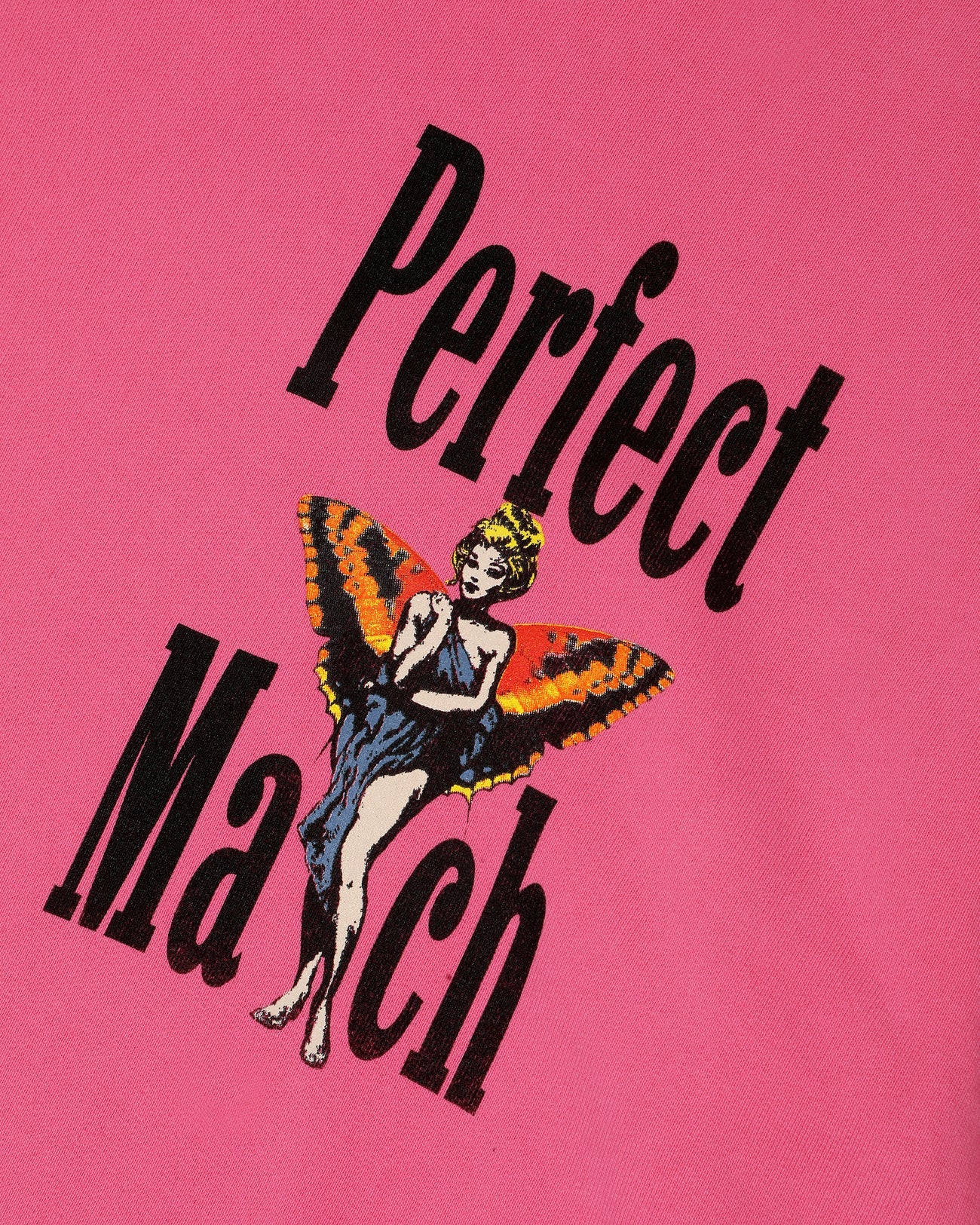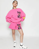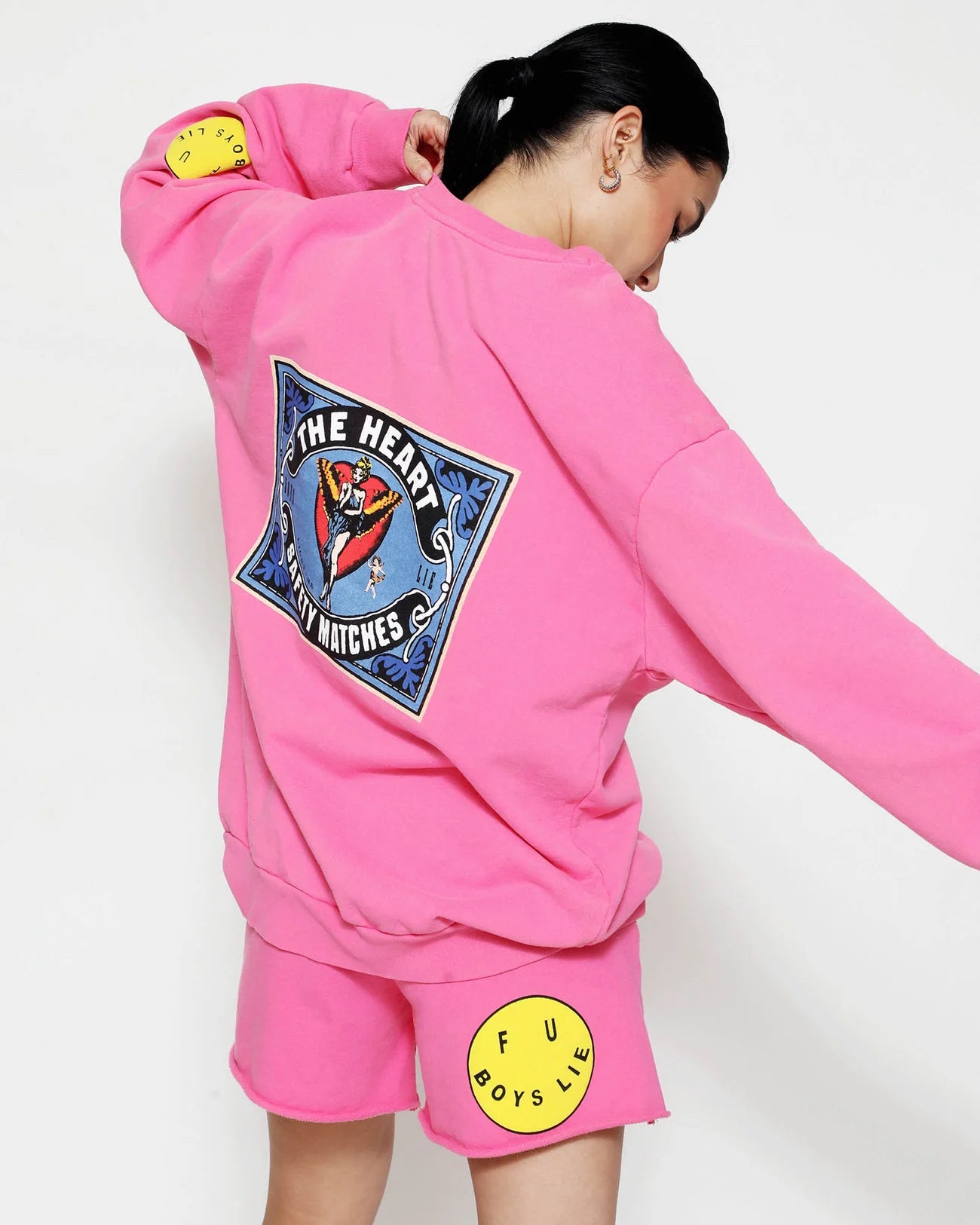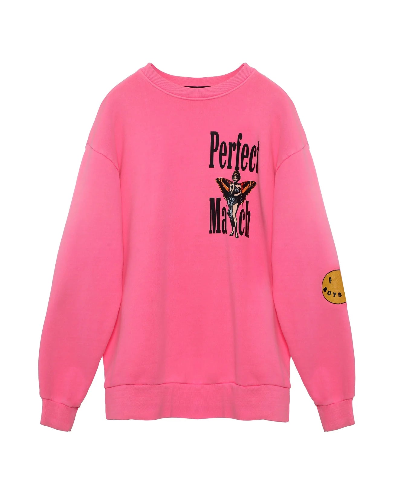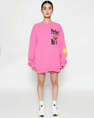 Heavyweight french terry fabric in hot pink. Oversized crewneck with puff print detail.