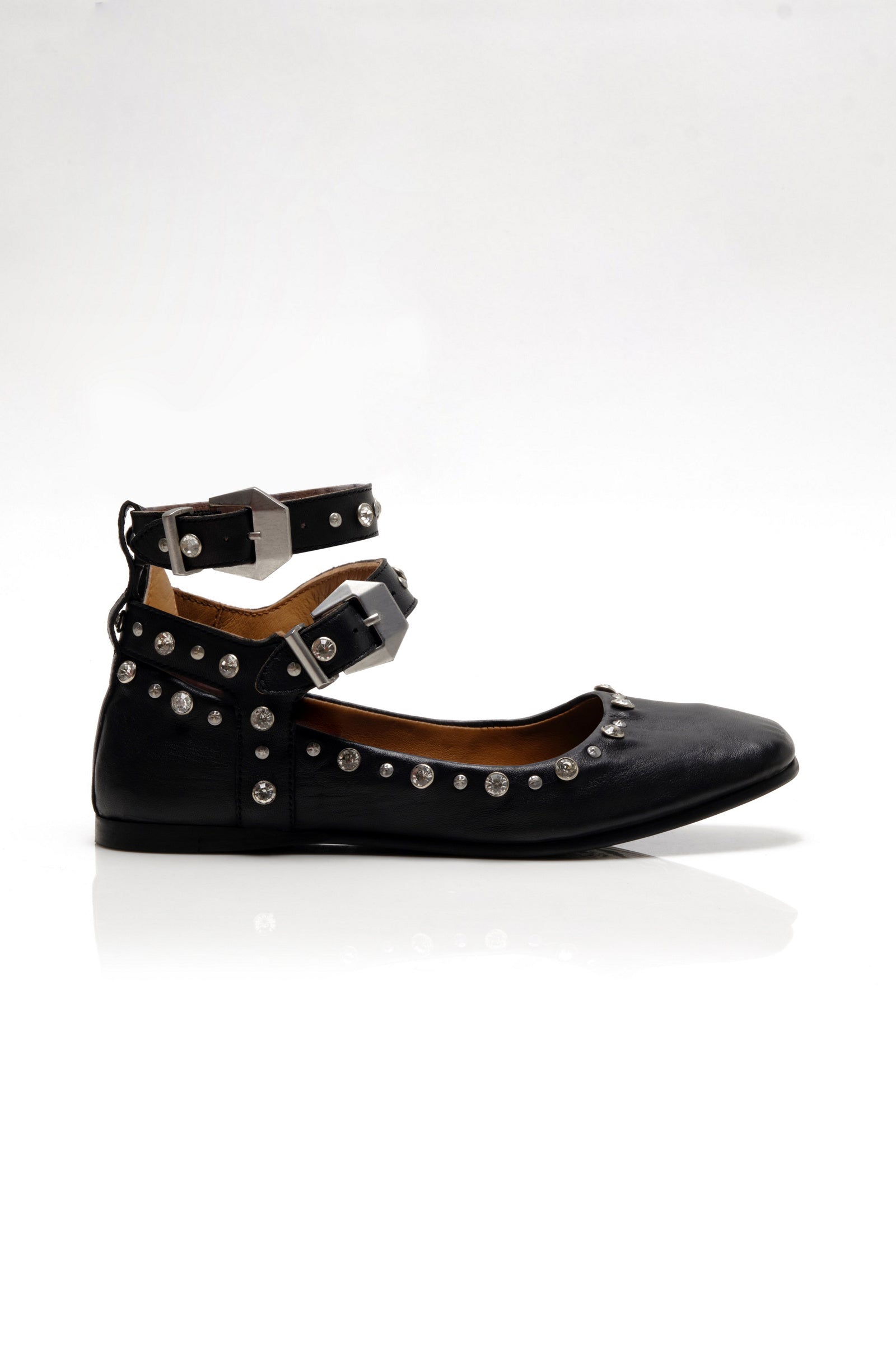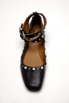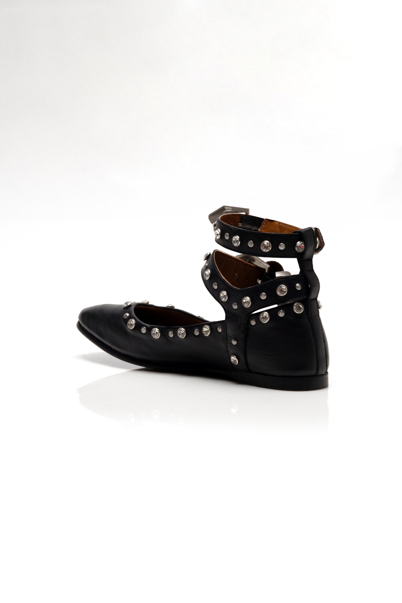 Slip into these so chic flats featured in a buttery soft leather with an adjustable ankle strap, stunning studded details, and a classic round toe.