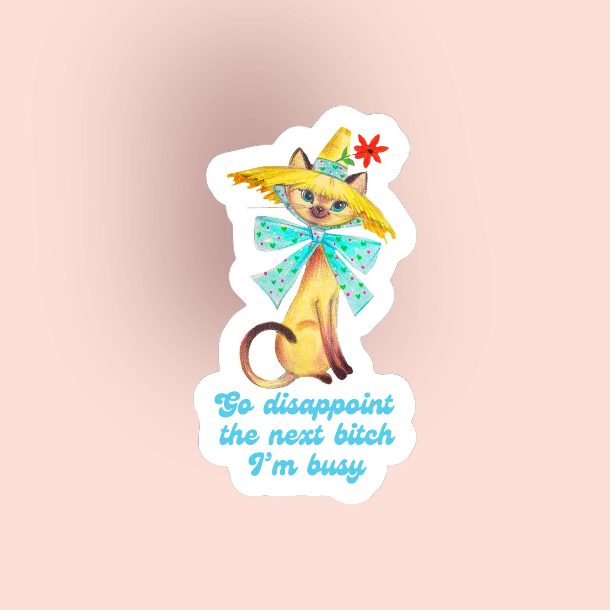 This sticker is perfect for your laptop, planner, mirror, phone case, car, water bottle, hydroflask, etc.! Stickers are 100% waterproof, weatherproof, seal on top that protects against water, sun and scratches. Thicker material, more ideal for water bottles, phones, etc Go Disappoint the Next B*tch Sticker is approximately 3.3 inches in size.