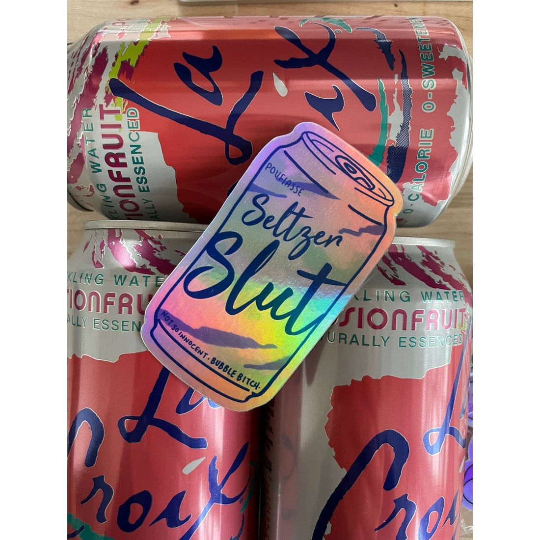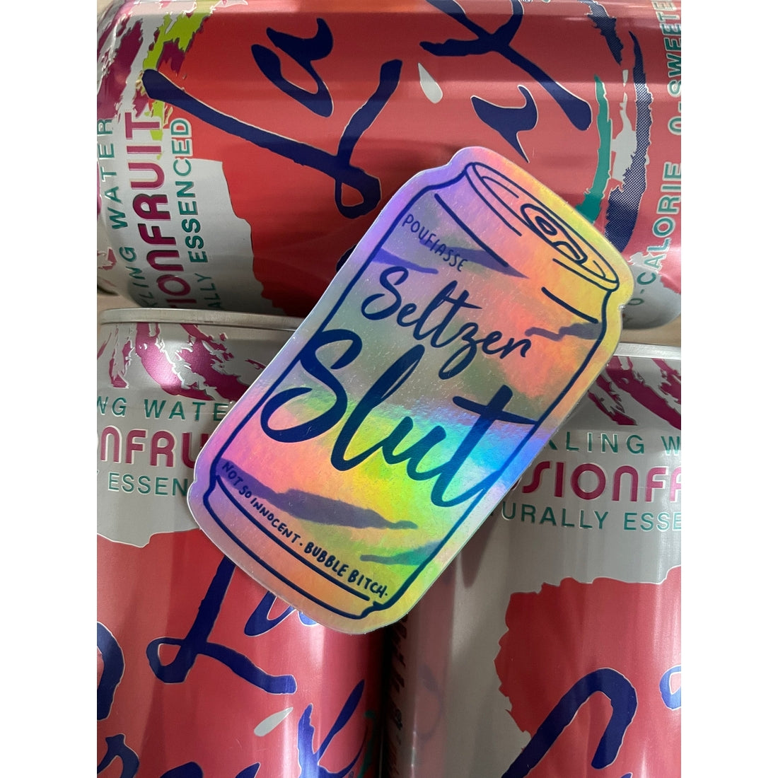 Show your seltzer pride with this amazing holographic sticker so the world knows you’re not a basic bitch, you’re a bubble bitch.