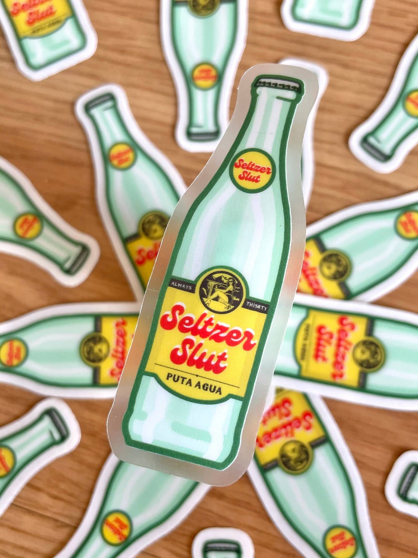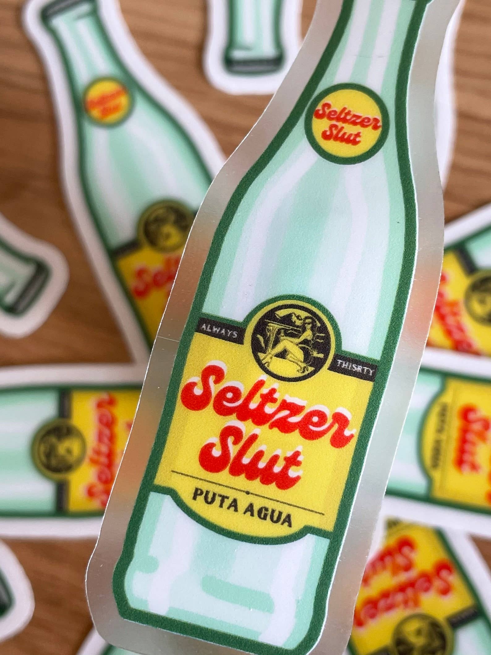 If you can smash a case of Topo Chico in a few days than this sticker was made for you - the Seltzer Slut sticker is printed on clear, weather proof, vinyl and is made to with stand the toughness of life.