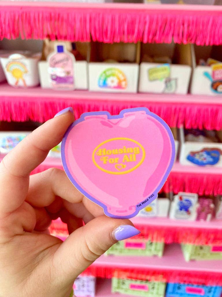 Polly pocket teaches us a very important lesson: everyone deserves shelter. Housing is NOT a commodity, it's a human right! 100% of the profits from this sticker will benefit the West Oakland Punks With Lunch Vinyl water resistant sticker with glossy finish and glitter detail. Measures 2.4 x 2.3 inches. Materials and Care: ✿ fully waterproof ✿ Feature UV screening to protect against weather and sunlight ✿ 2-4 year minimum outdoor life Perfect sticker for your laptop, water bottle, notebook, and even your car!