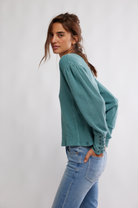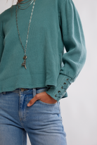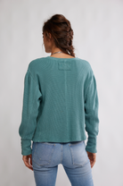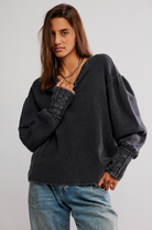 Lace-up details adorn the cuffs of this laidback long sleeve from We The Free, featured in a classic thermal fabrication with voluminous sleeves for added dimension.