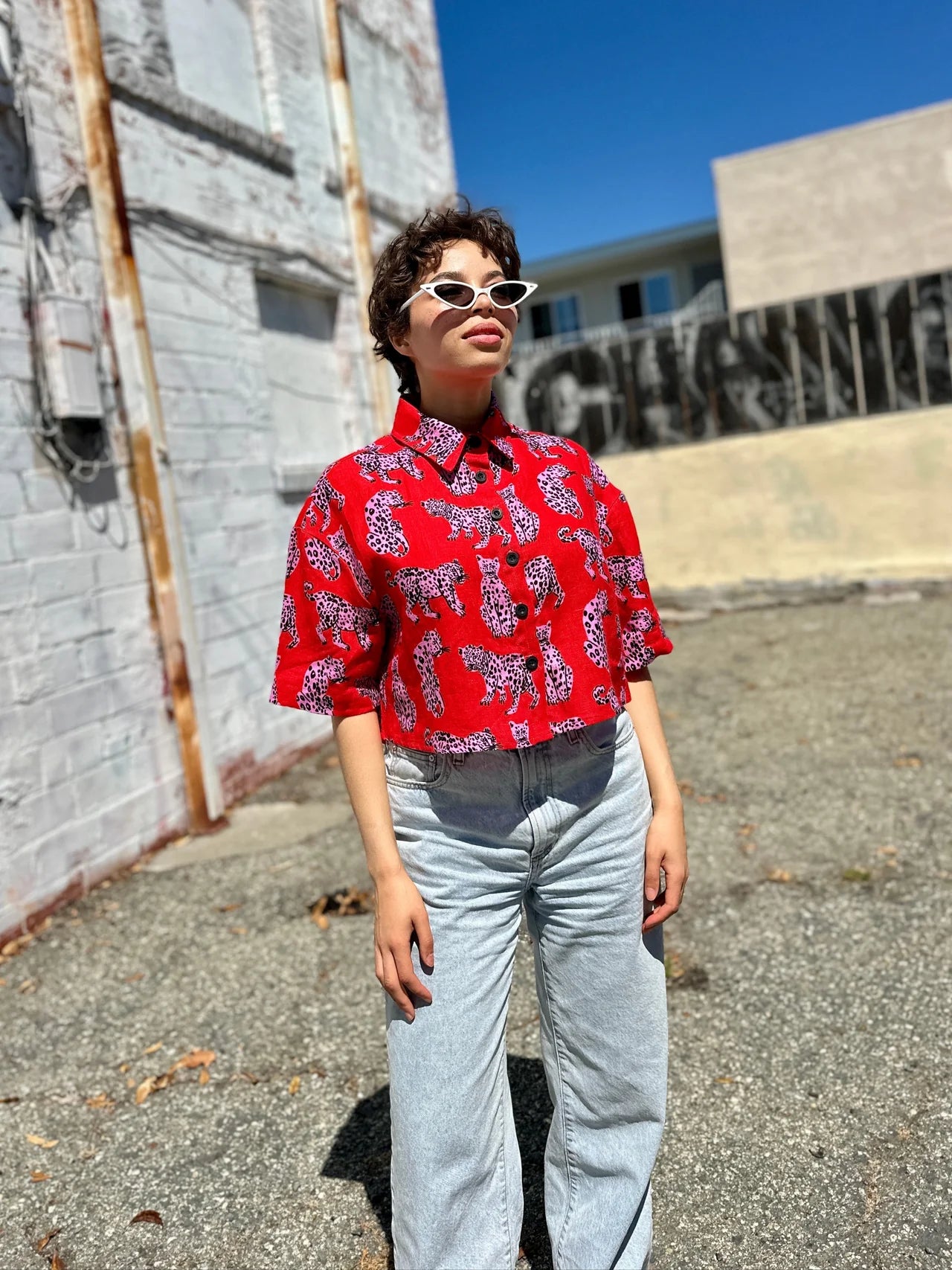 The Linen Olivia top is easy breezy! It has a boxy and oversized silhouette, cropped length, and dropped shoulder seams. It has a nice flat laying collar and buttons all the way up! It's running a tad big, so we recommend sizing down on this one. Pair it with the Linen Catalina pant for the perfect all over linen look!