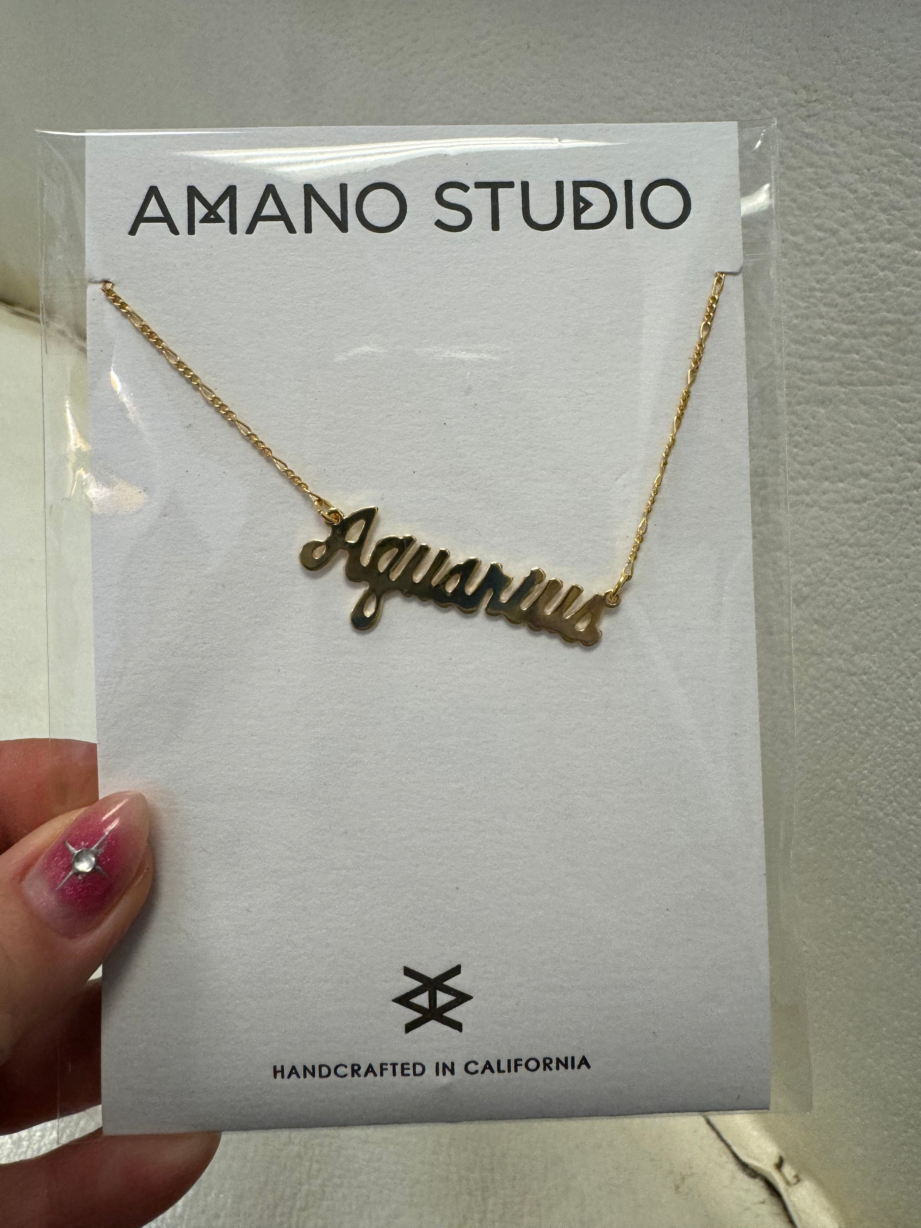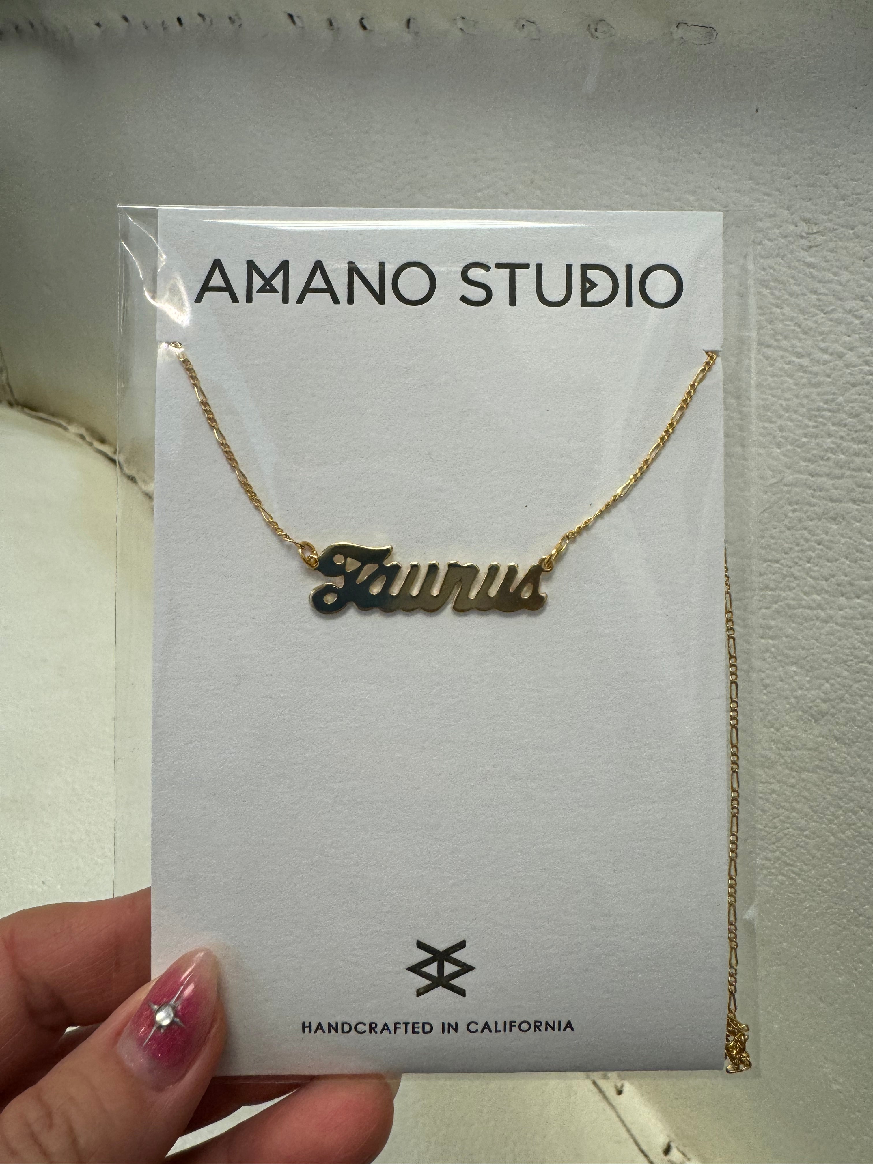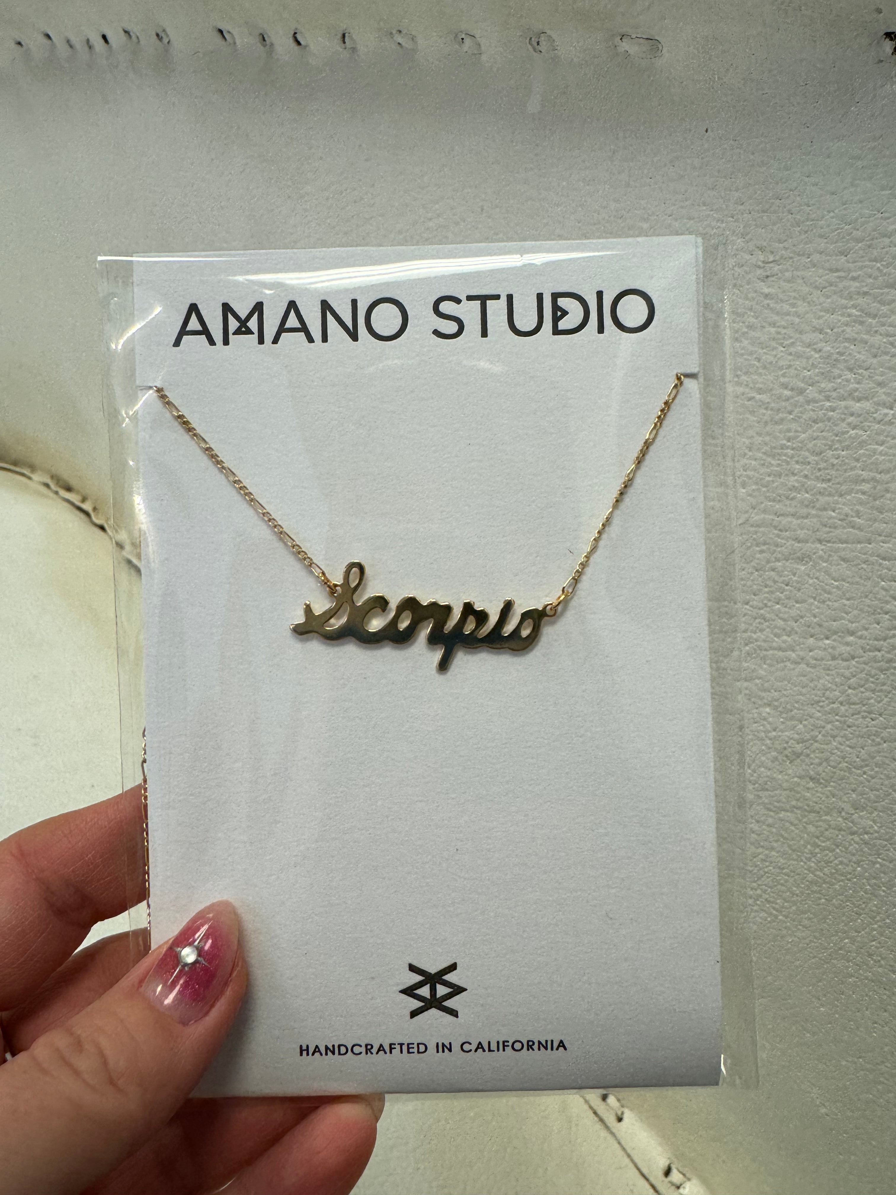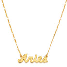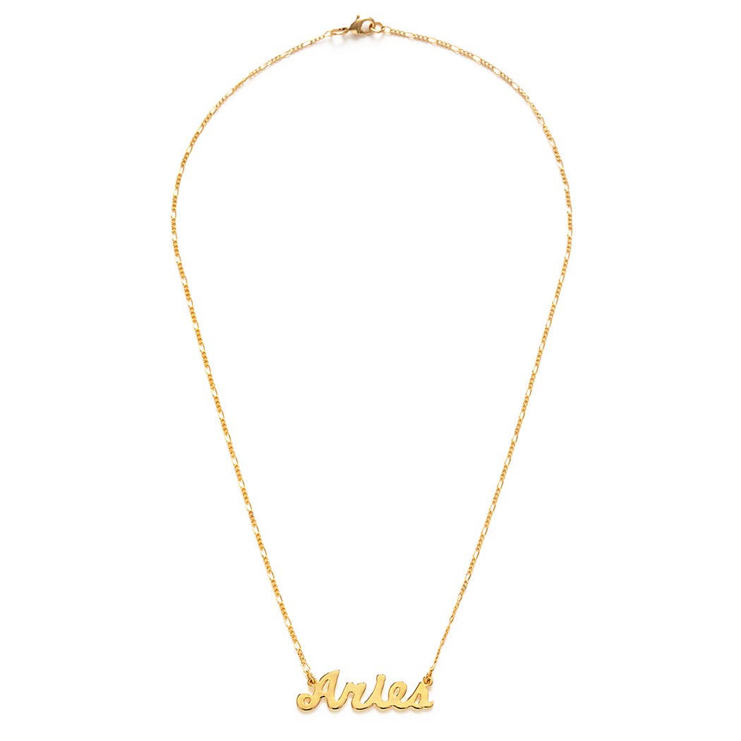 These sexy zodiac necklaces hang at 18" on figuero chain. Made from vintage molds of brass with a shiny, 14k gold plate.