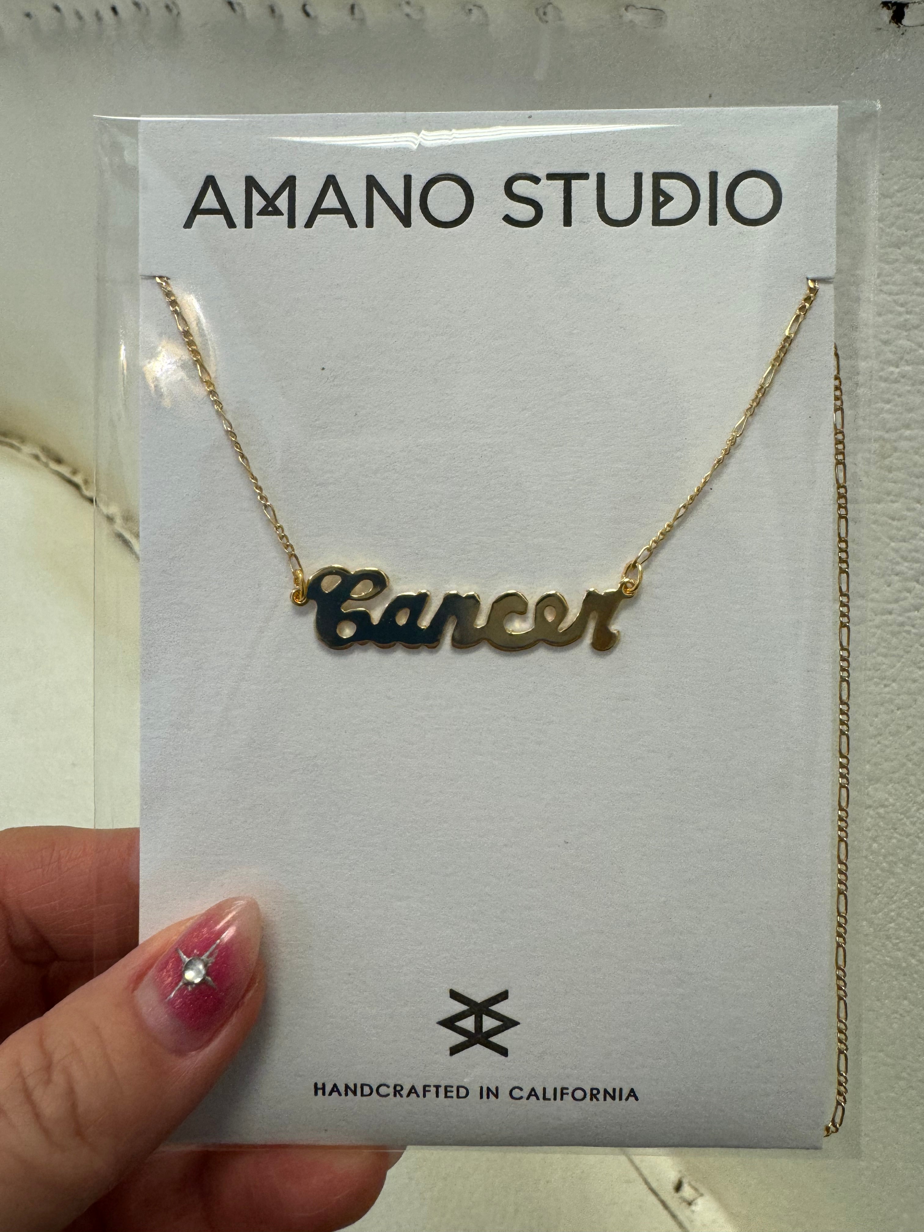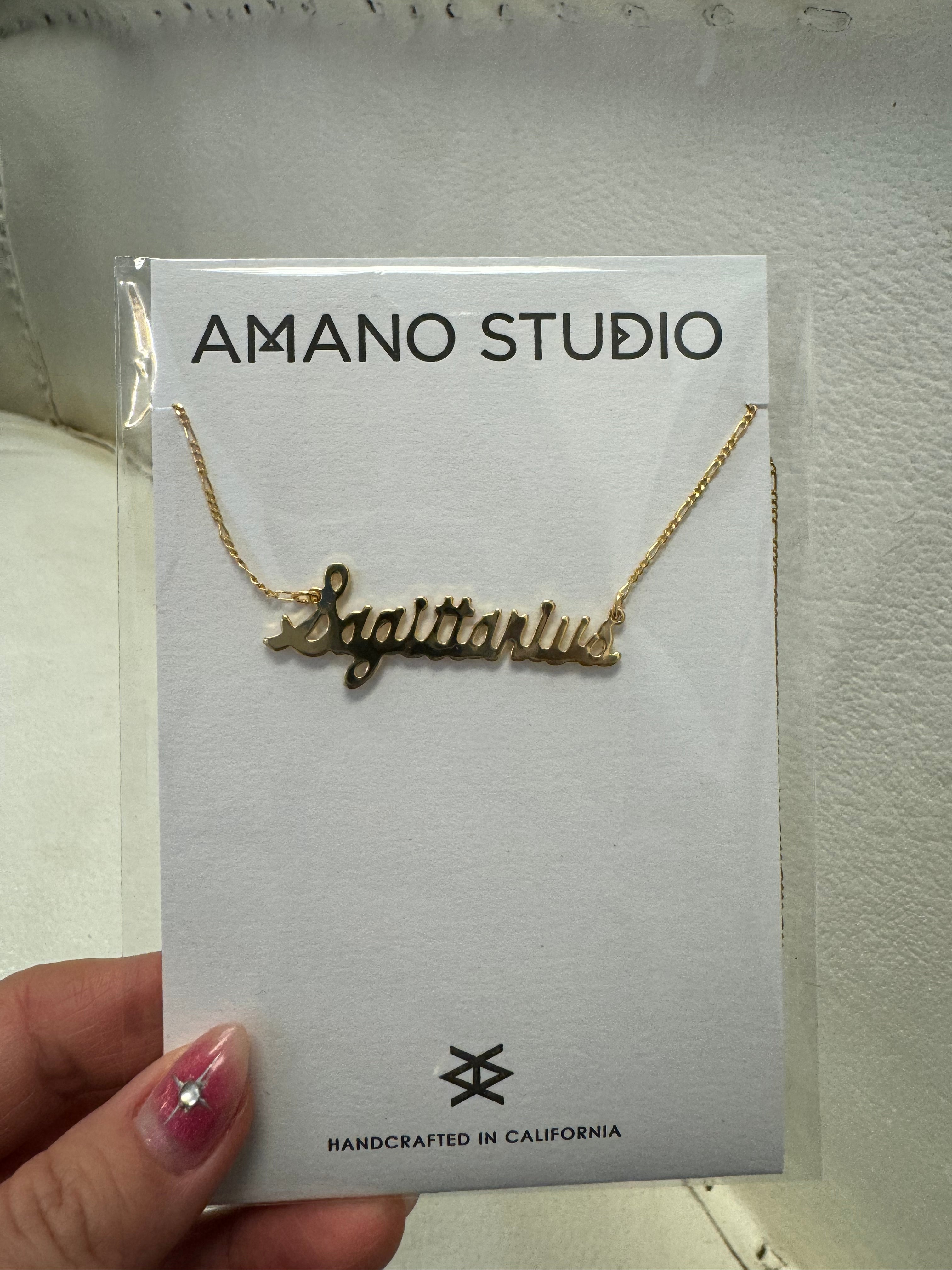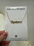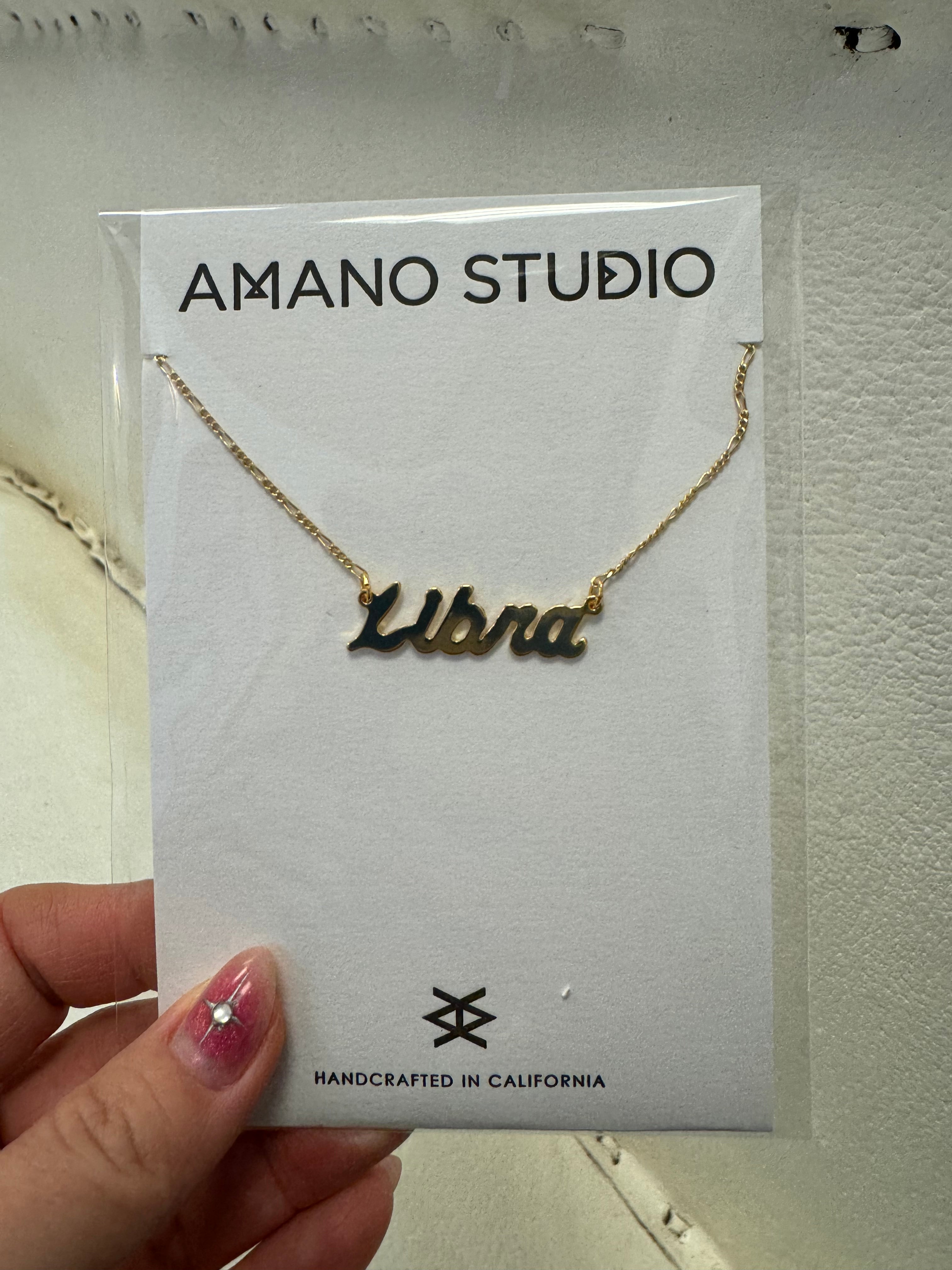 These sexy zodiac necklaces hang at 18" on figuero chain. Made from vintage molds of brass with a shiny, 14k gold plate.