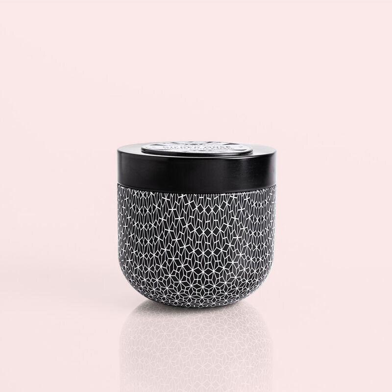The Smoked Clove & Tabac 12.5 oz. oversized tin is an onyx beauty and chic piece of art. With notes of ginger, clove, geranium and a hint of tabacco its fragrance is smooth and delicate and perfect for any space.
