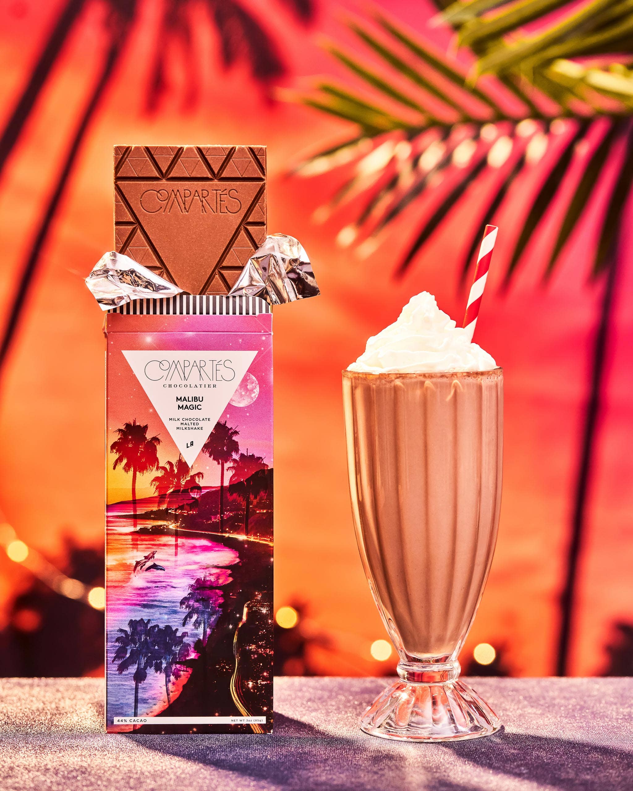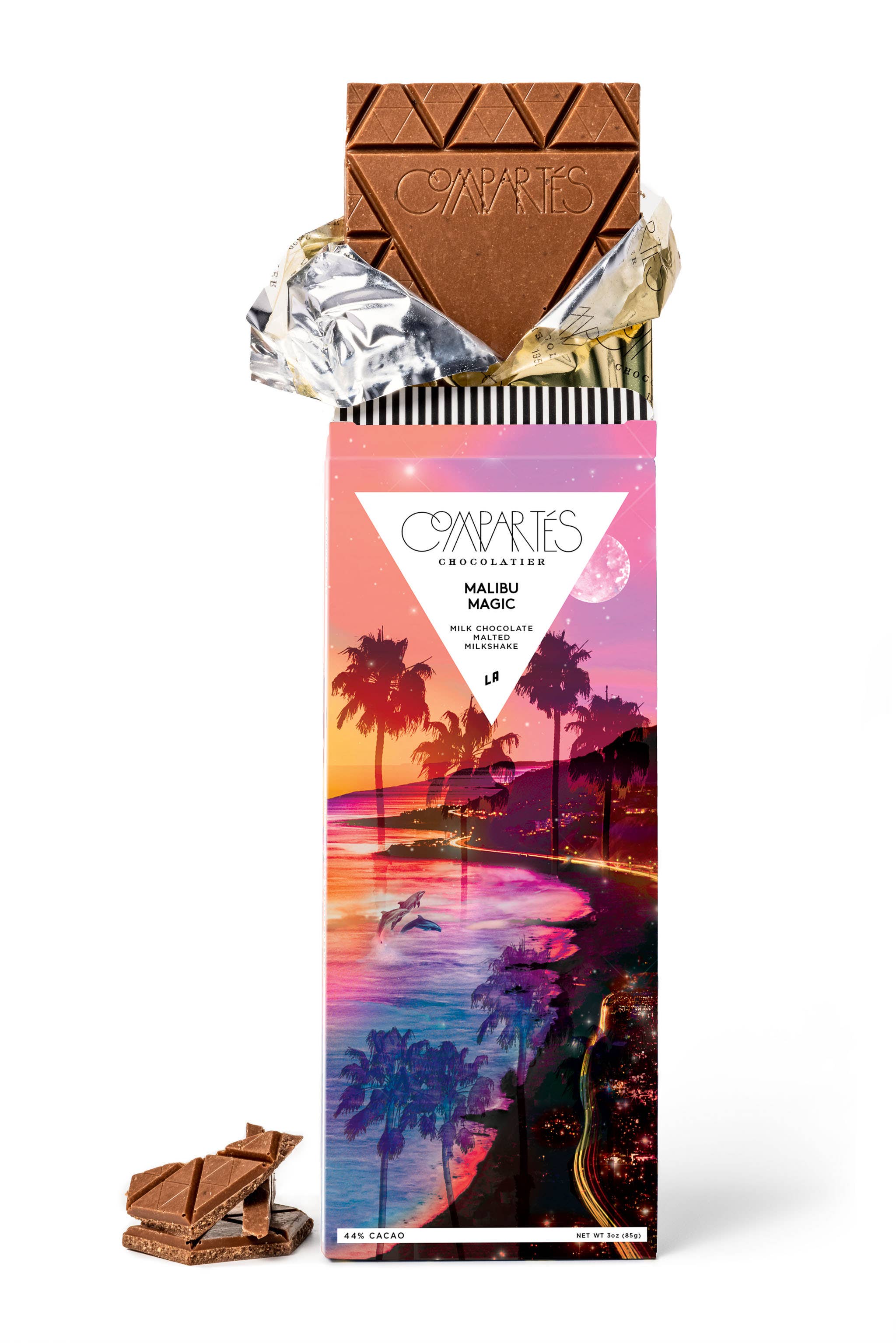 Brand NEW Compartés Gourmet MALIBU MAGIC Chocolate bar is a delicious malted milk chocolate sensation.