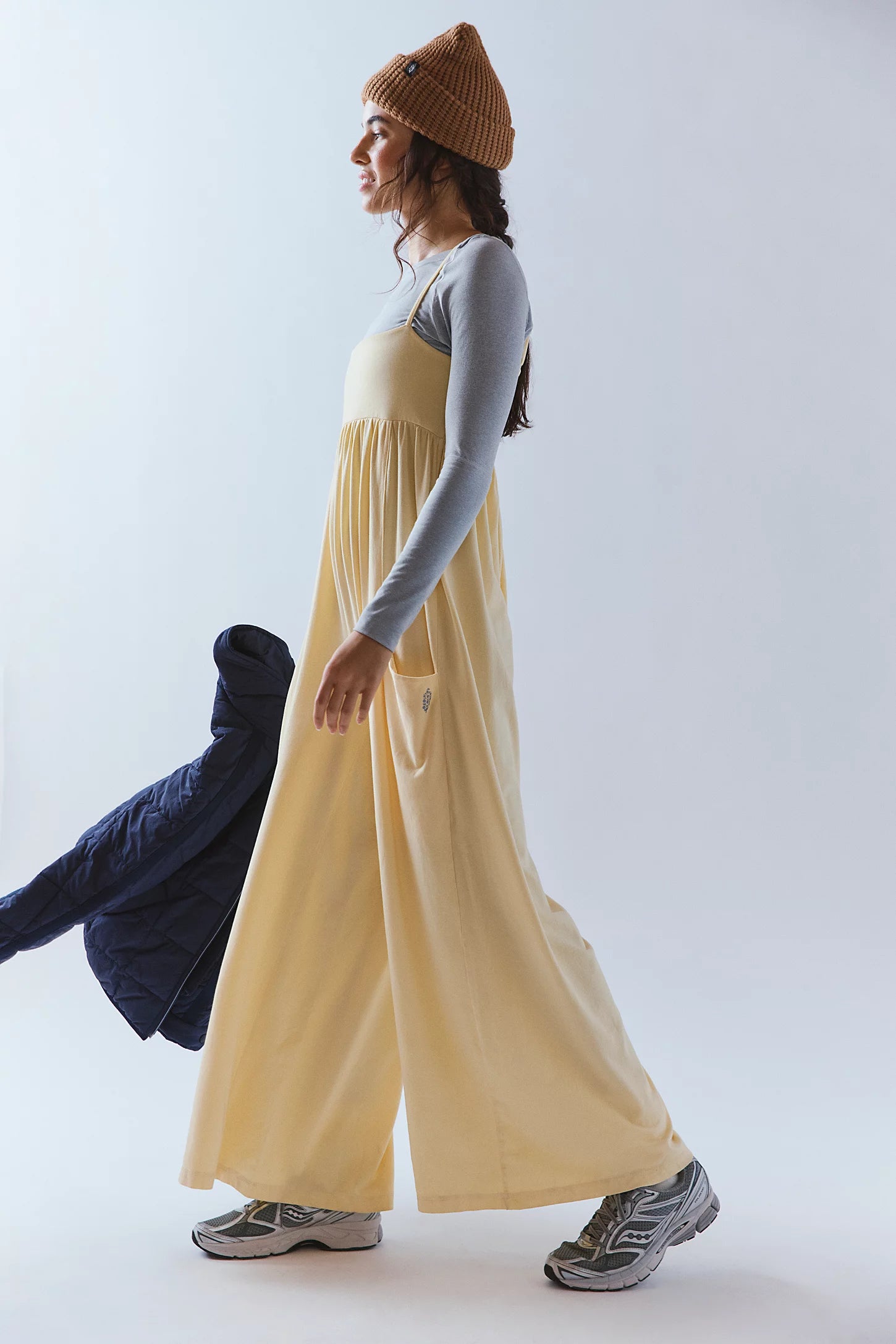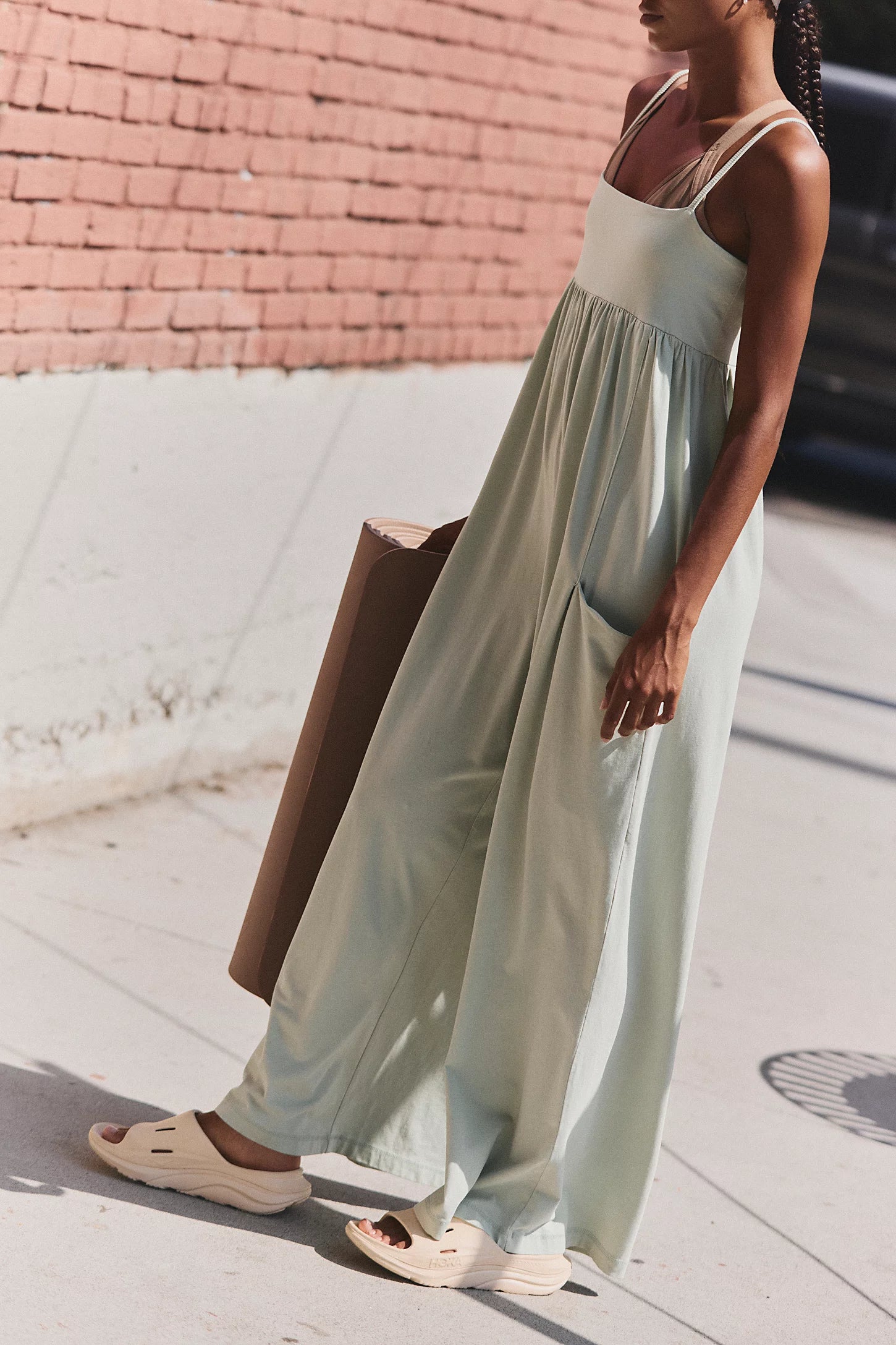 An effortless one-and-done piece that slips on and steps up. The Hot Shot Strappy Onesie brings an elevated ease to your post-class routine, coffee runs, or anything in between. Wide-leg, drapey comfort meets subtle structure—finished with barely-there straps and oversized patch pockets.