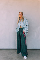 Featuring an extra wide relaxed leg, woven heart tape down side legs, side pockets, a cute Sabbi leg embroidery and thick elasticated waistband with draw string.
