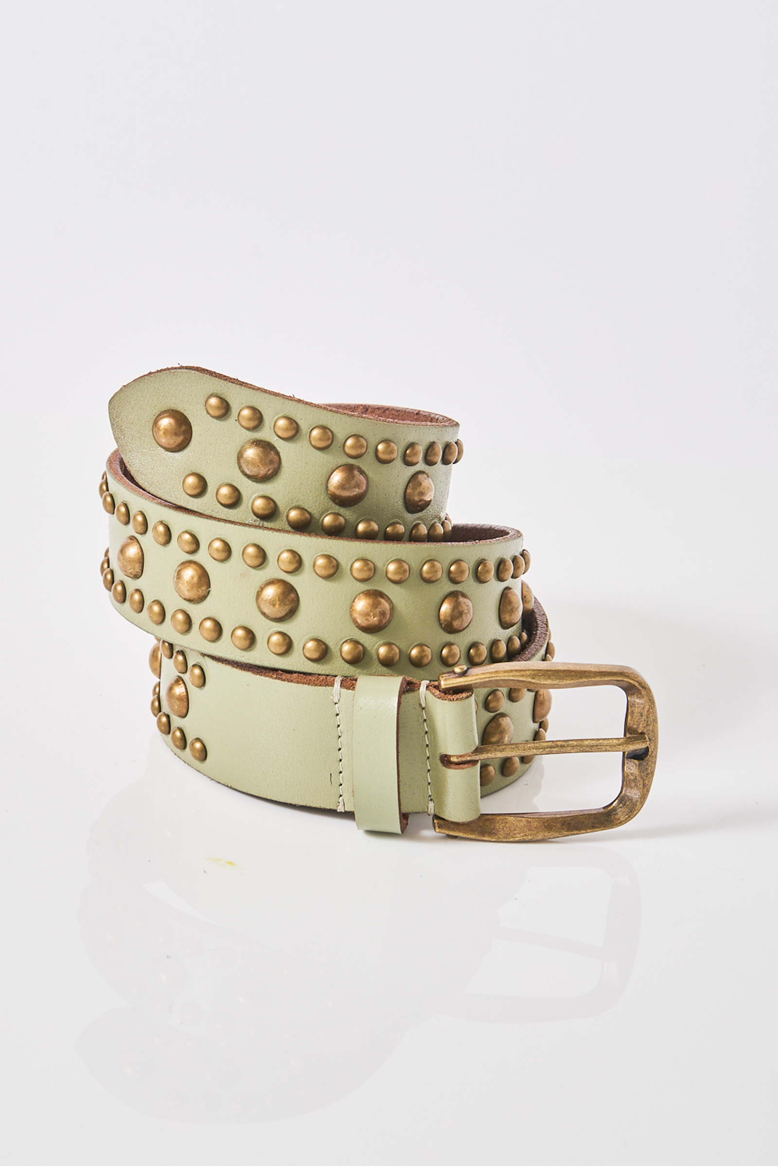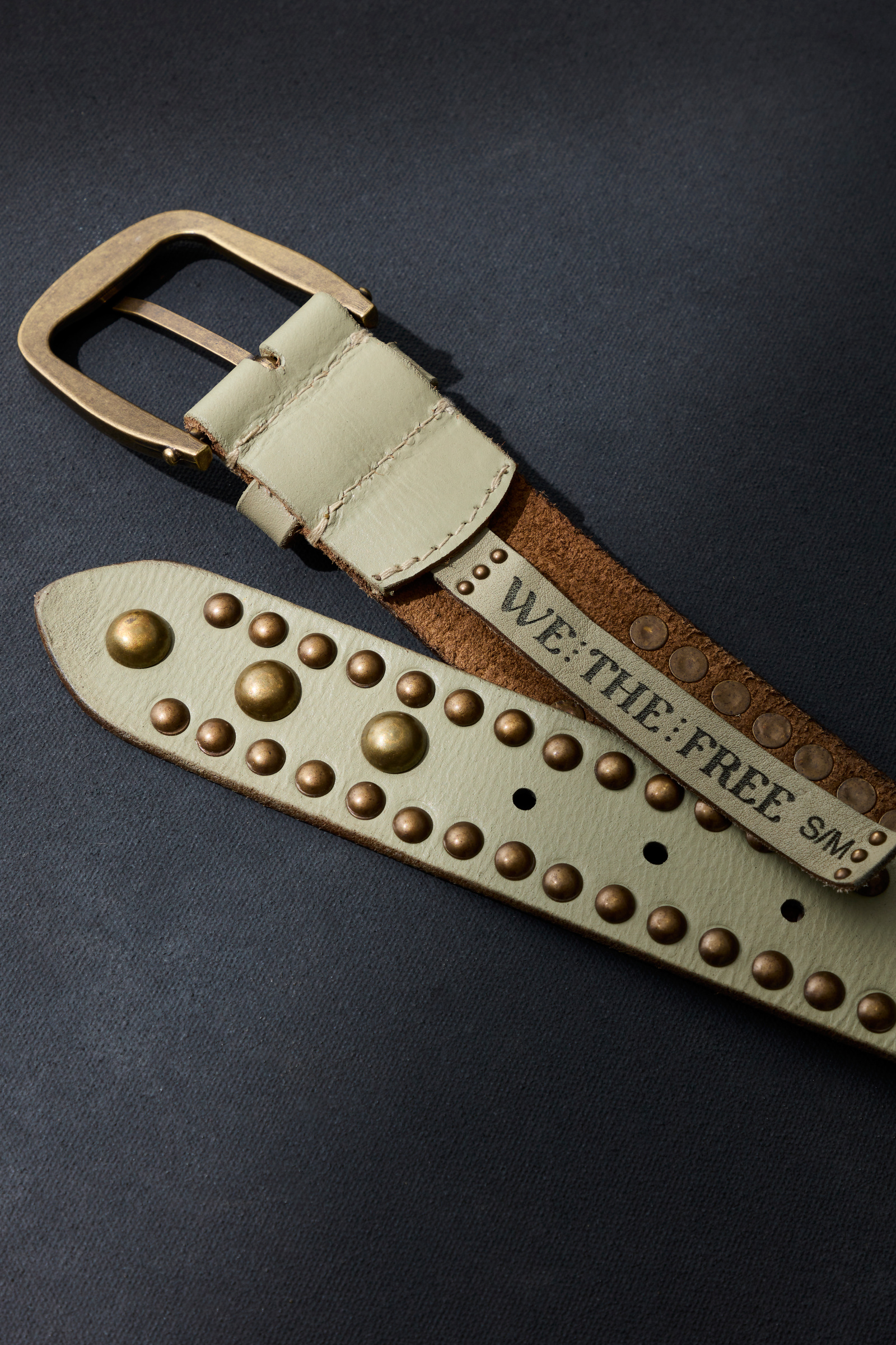 - Aged silver-tone studs throughout with silver-tone buckle closure