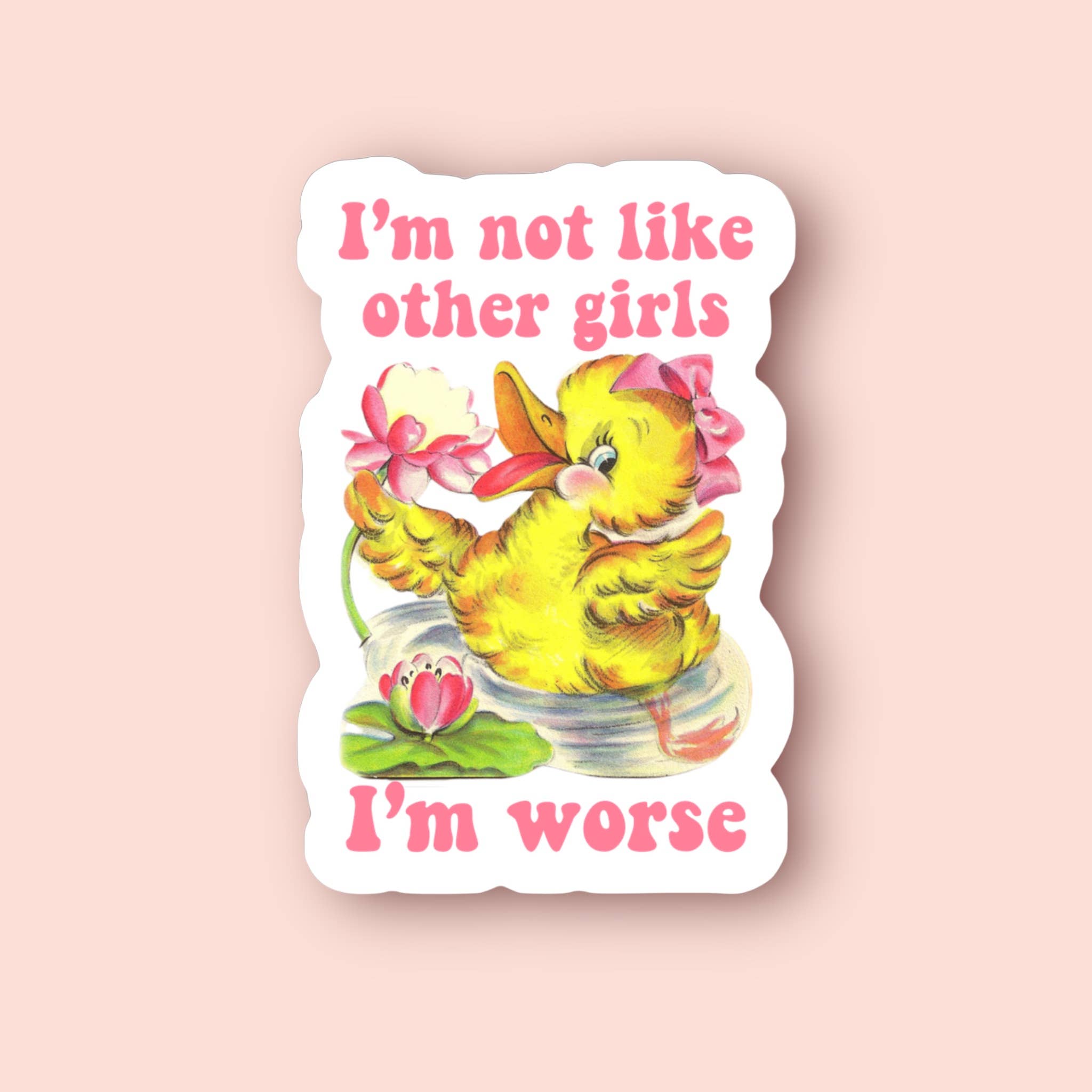 Stickers are 100% waterproof, weatherproof, seal on top that protects against water, sun and scratches. Thicker material, more ideal for water bottles, phones, etc. I’m Not Like Other Girls I’m Worse