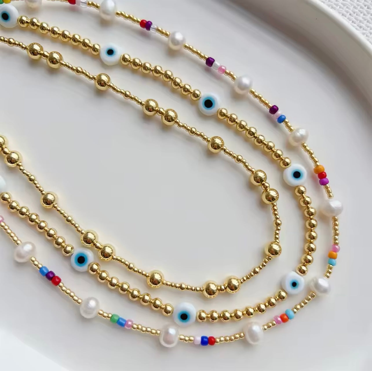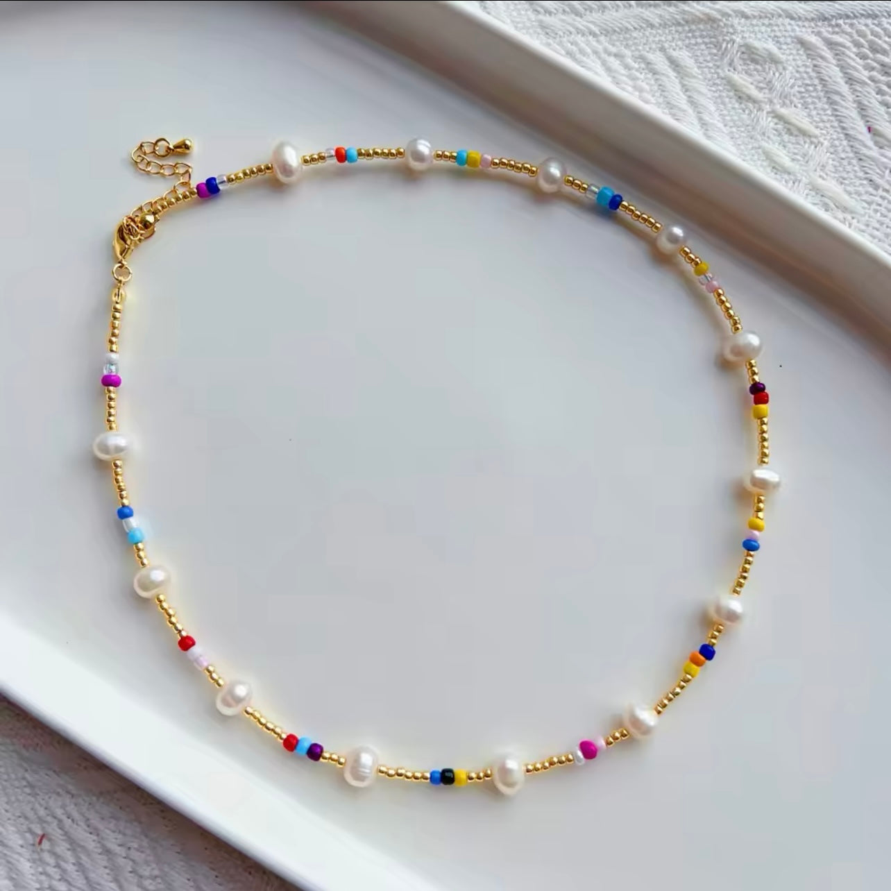 Upgrade your jewelry collection with our Beaded Multi Pearl Necklace. This gold plated necklace features stunning pearls and multi color beads, perfect for layering and adding a touch of sophistication to any outfit. Elevate your style with this elegant and exclusive piece.