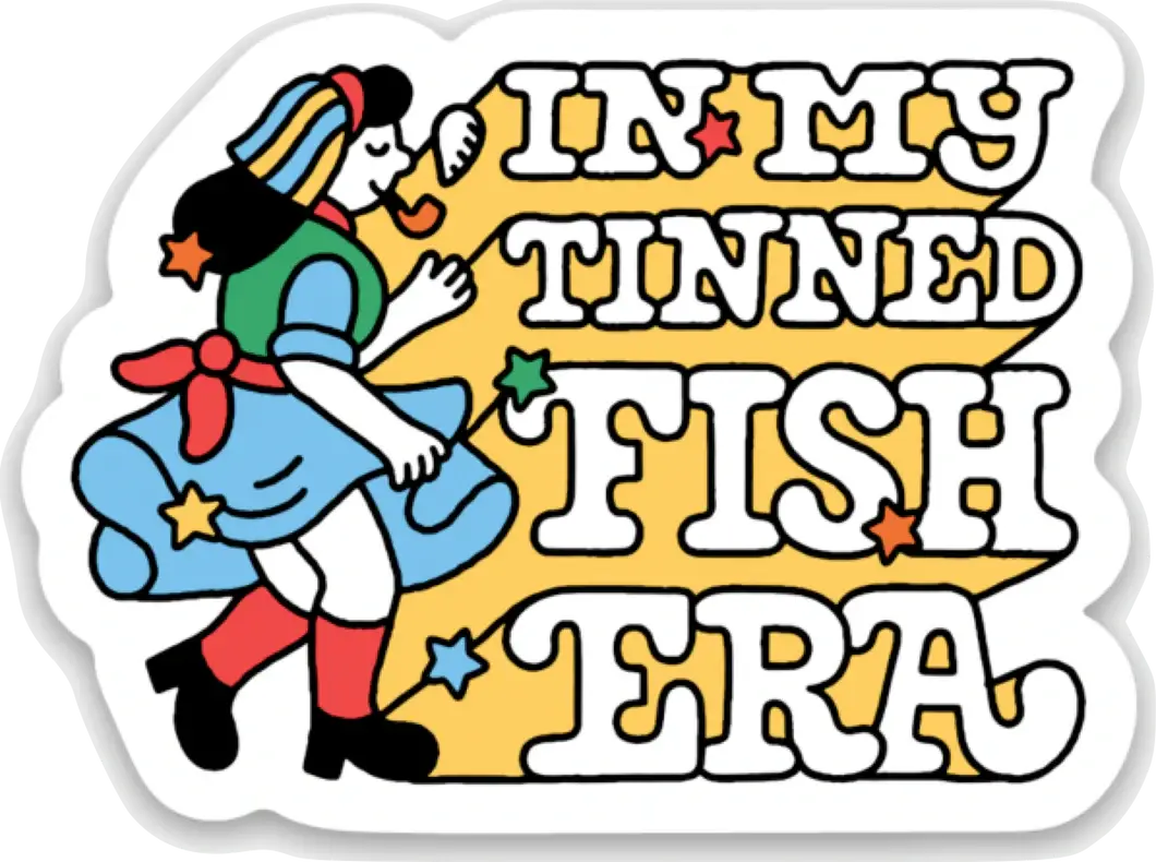 Perfect for water bottles, laptops, and more. Dive into the era of tinned fish with this playful sticker.