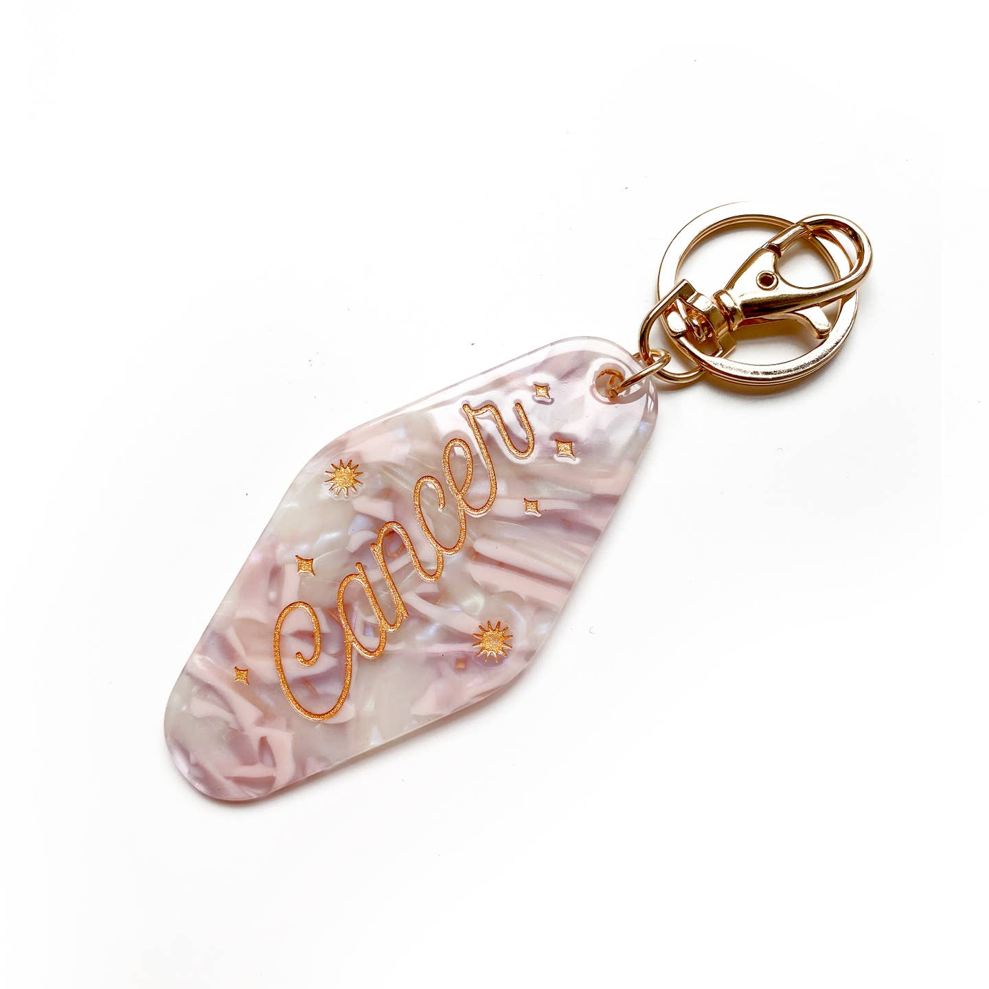 Unlock the secrets of the stars with our Zodiac Motel Keychain. Carry a piece of cosmic luxury with you wherever you go. Let the zodiac guide your travels and elevate your style. Made with exquisite detail, this keychain is a must-have for any celestial soul.