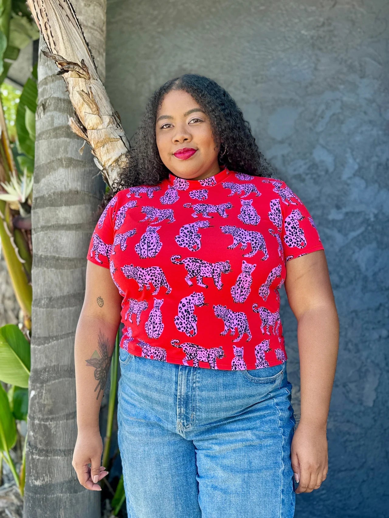 An essential wardrobe staple- whether it's for a workday or the weekend, the mock neck is fun and easy to style! It's made in our stretch cotton jersey and features a mock neckline, short sleeves, and fitted silhouette.