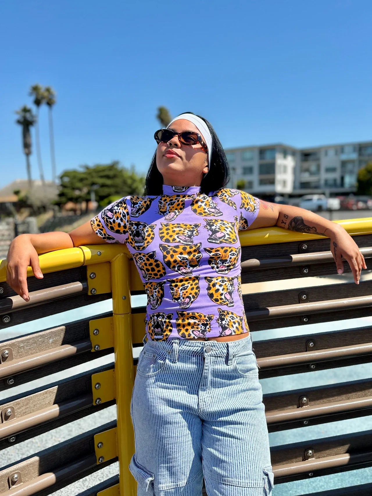 We measure each of our garments by hand, unstretched and laying flat. Our 10 oz stretch cotton jersey is incredibly soft and stretchy. It can stretch up to 8 additional inches on the body, so there’s a bit more sizing flexibility with this top. Be sure to consult the size guide below to find the best fit for you!