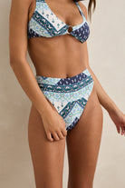 Elevated and classic, the Seacliff Hi Waist Pant features a high-rise fit with moderate bottom coverage. A clean waistband and subtle metal detailing provide a polished, flattering silhouette.