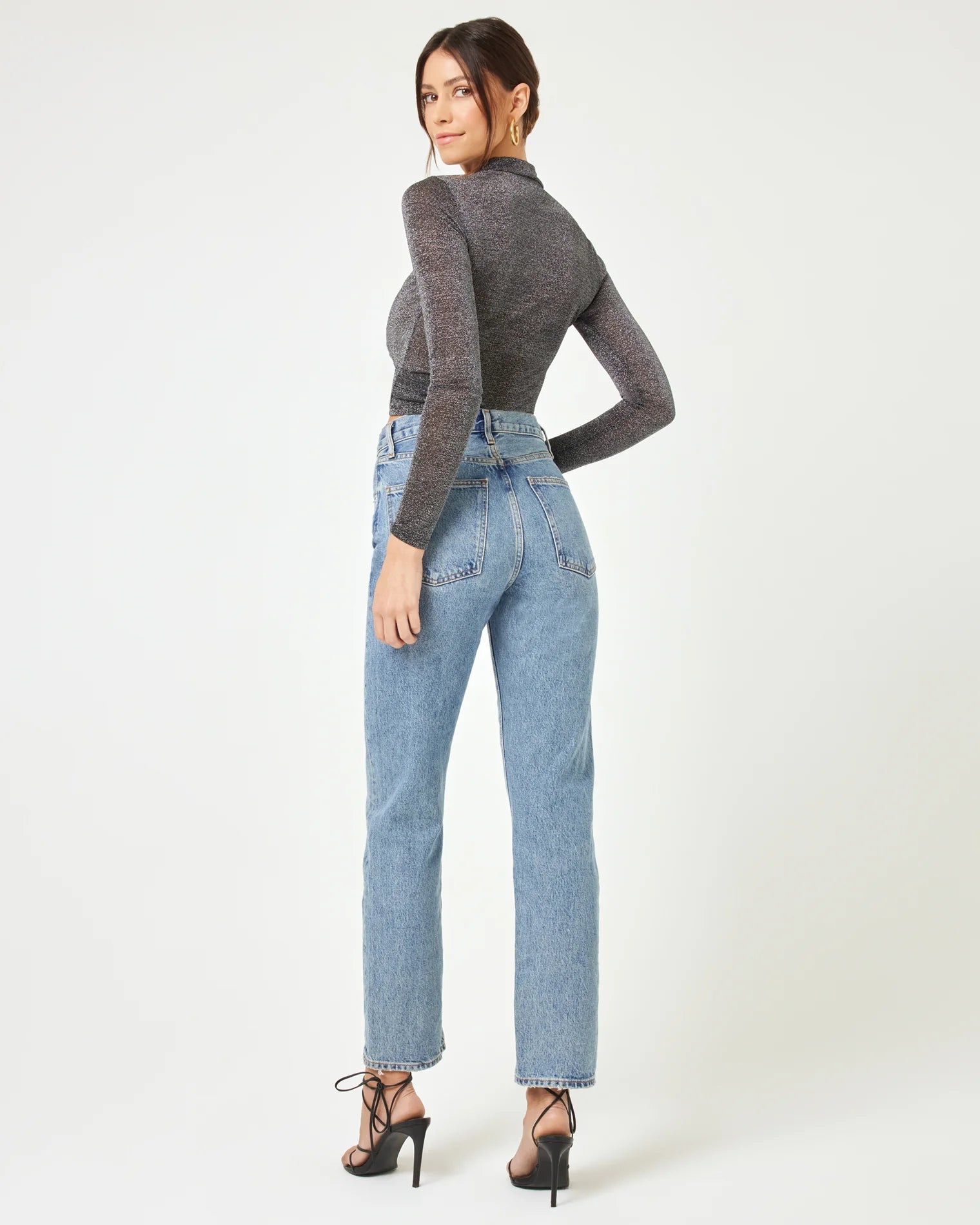 The Shimmer Long Sleeve Top is giving day-to-night energy. This sheer / mesh long-sleeve has a mock neck and looks immaculate when paired with denim or a satin skirt.