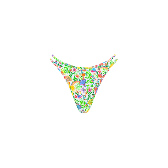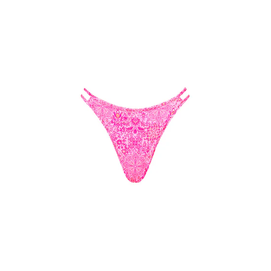 This is a cheeky tanning bottom that offers a slim and stylish waistband design for girls who prefer a minimal looking style! Most customers like to size up in these bottoms due to the firm fit.
